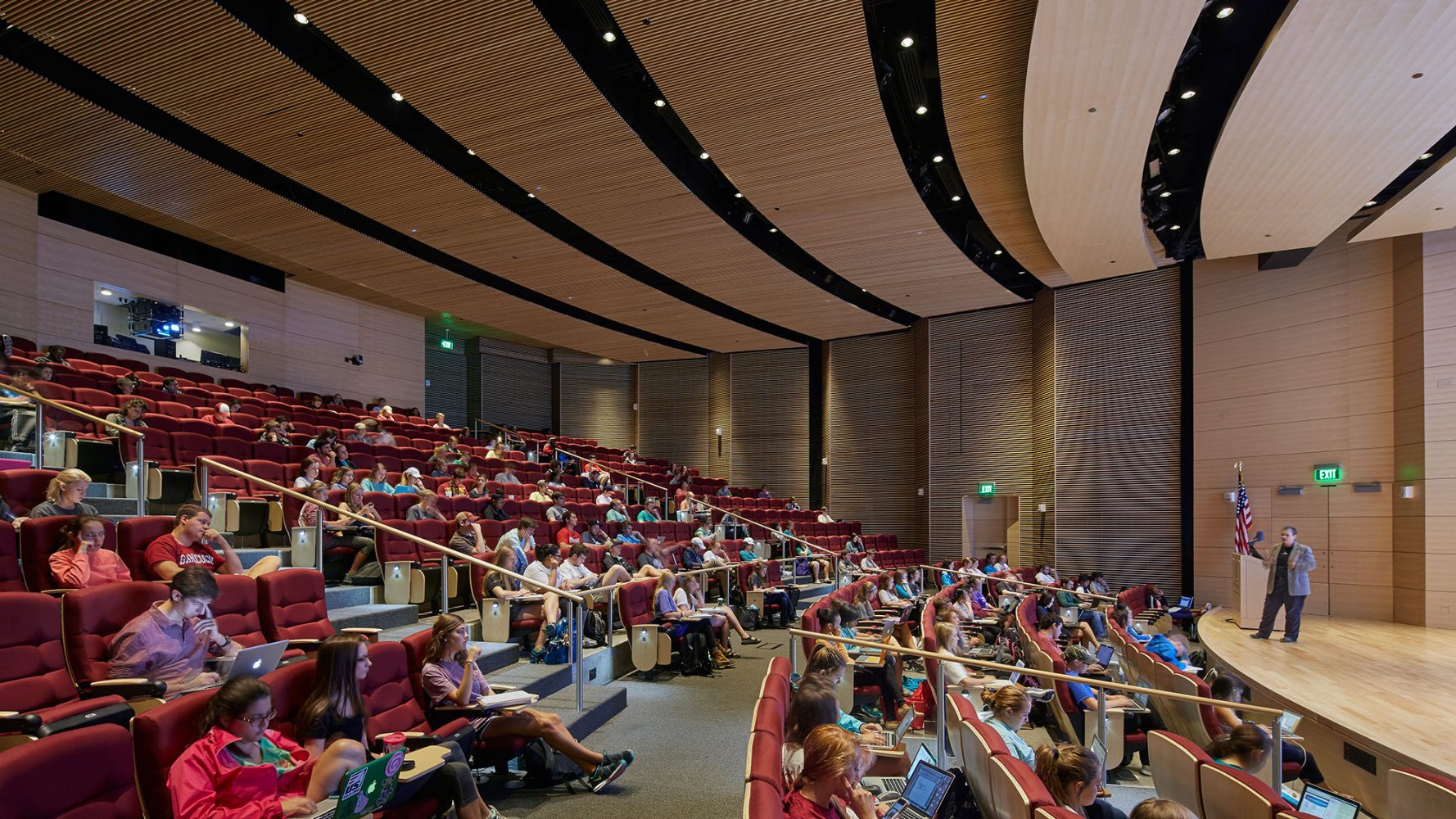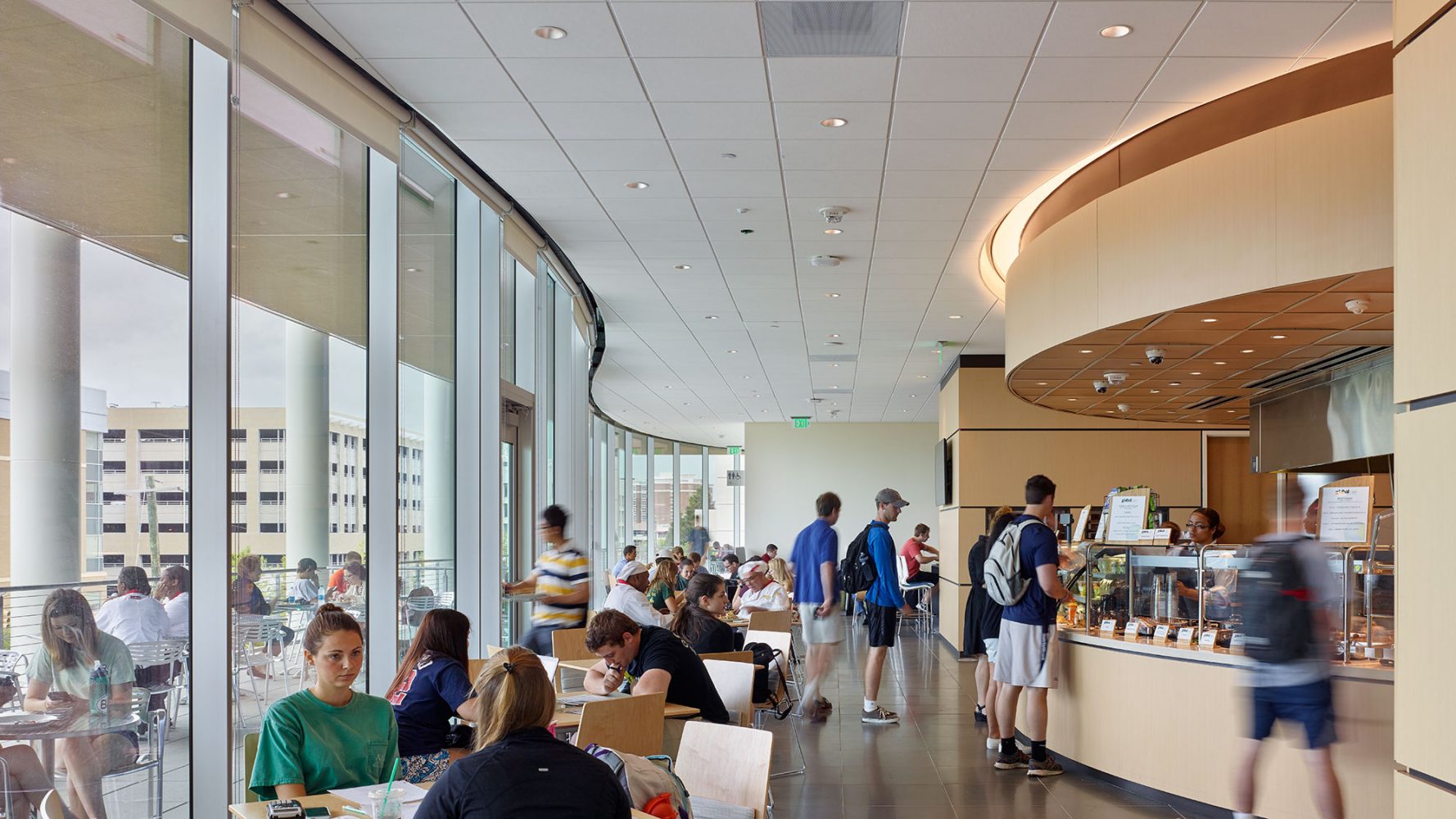 A través de sus espacios activos y transparentes, que animan los cuatro lados del edificio, y mediante sus múltiples puntos de acceso que fomentan la circulación y el acceso peatonal, el nuevo edificio de la escuela de negocios Darla Moore está diseñado para contribuir a la revitalización del distrito atrayendo una gran población nueva todos los días.