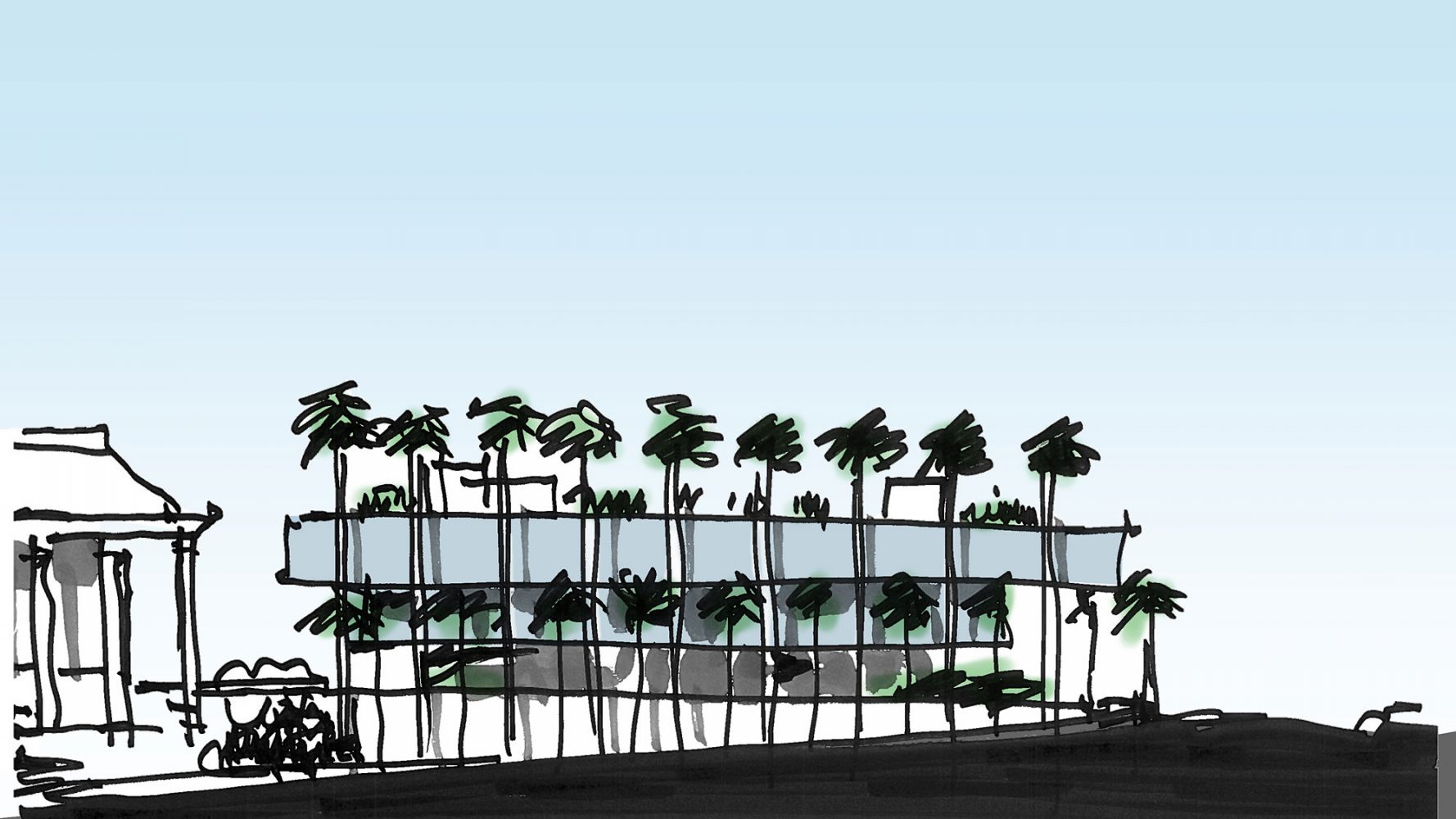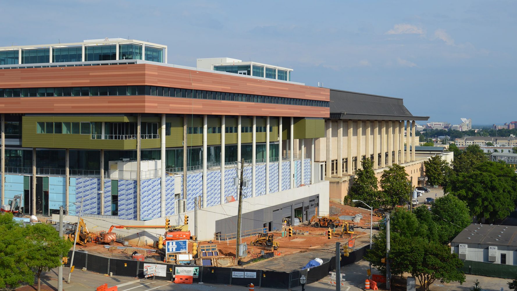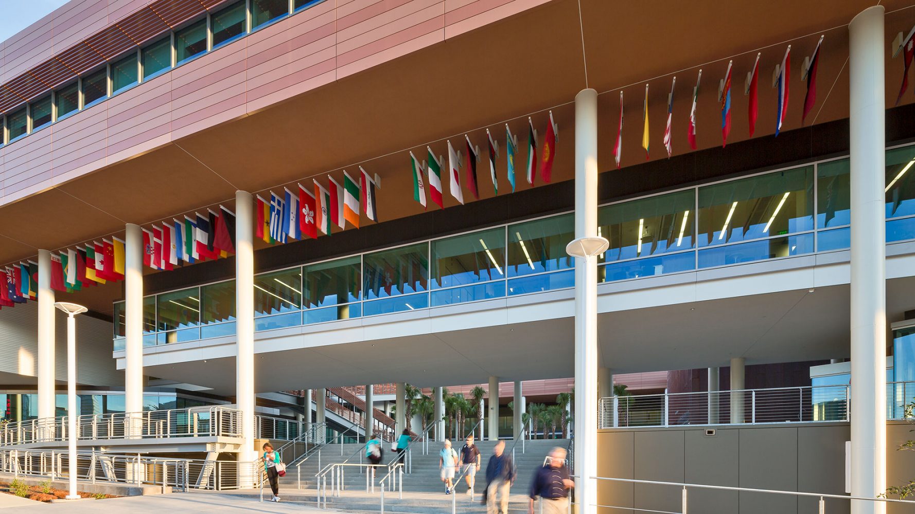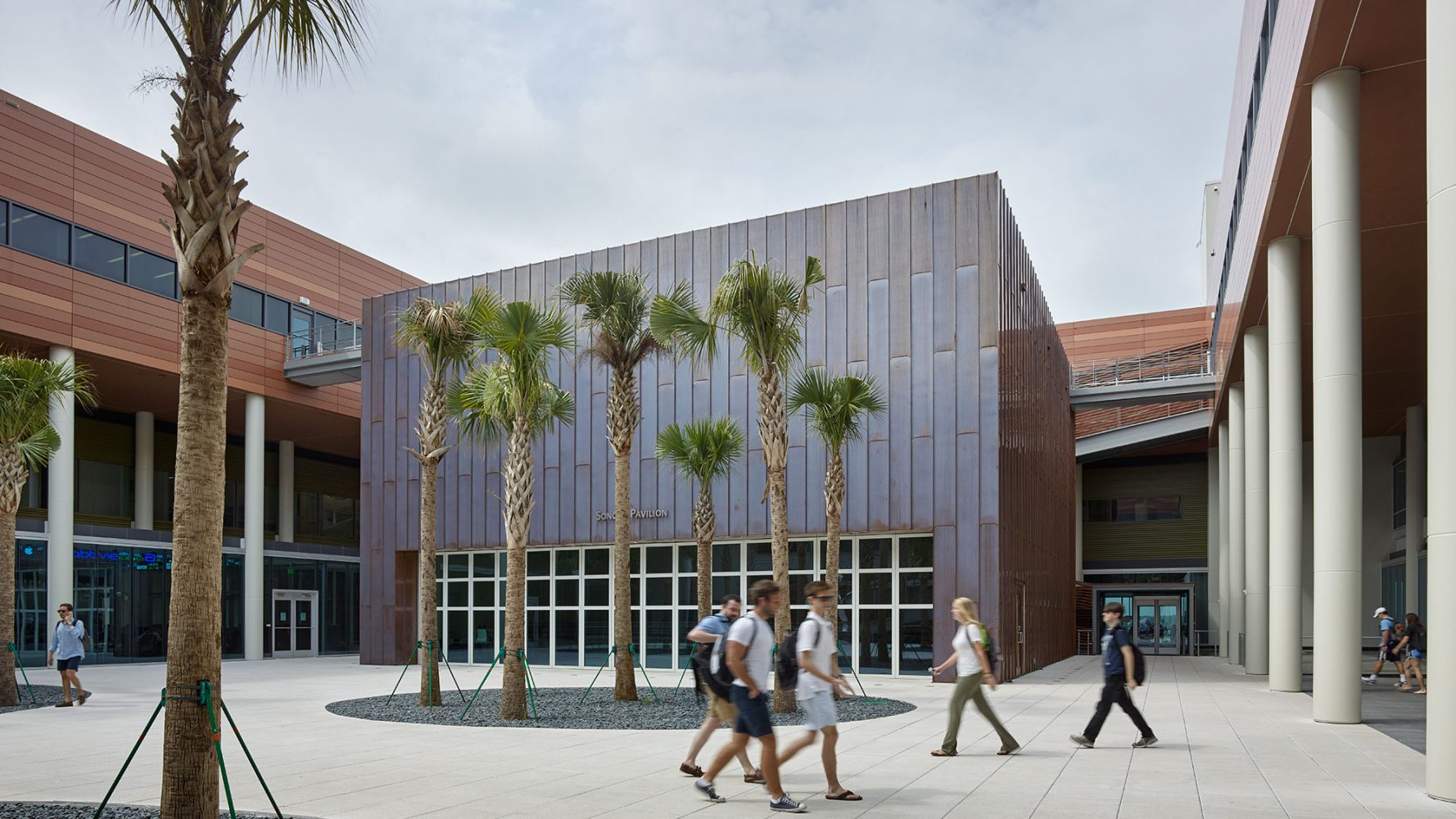 El nuevo edificio refleja naturalmente su emplazamiento. En su centro, un “patio de palmas” presenta una arboleda de palmas de abanico, el árbol del estado de Carolina del Sur. Dos grandes escaleras conducen a los niveles superiores desde el patio, que también tiene un pabellón para eventos. La cubierta está diseñada para albergar cuatro pabellones bajo una pérgola continua con paneles fotovoltaicos integrados, que contribuyen al diseño sostenible general del edificio.