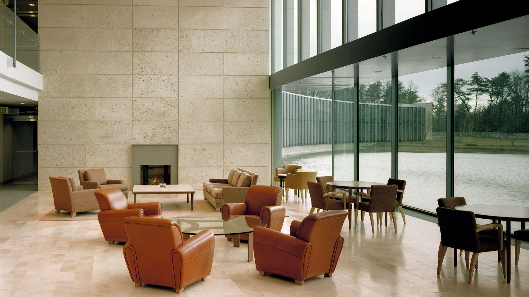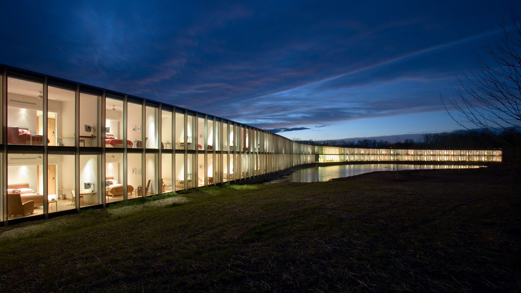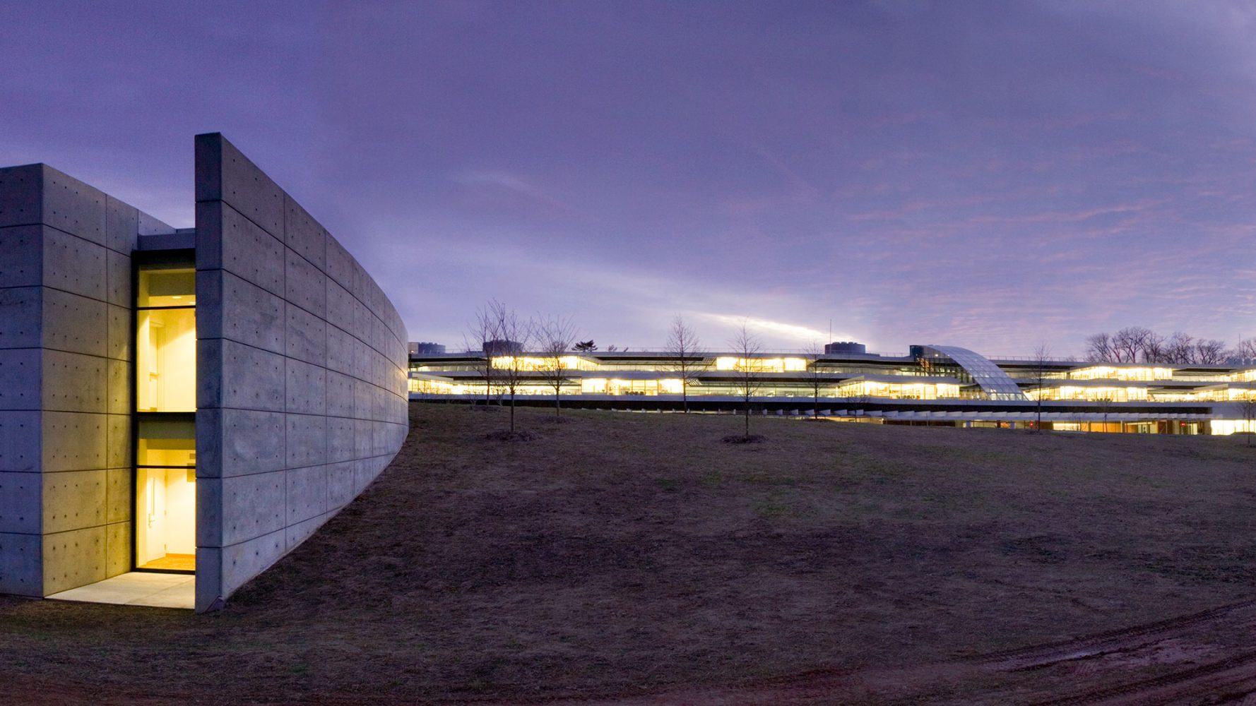 The leading-edge, naturally lit laboratory is built into the natural contours of the site in rural Virginia and features what was the largest green roof in the world at the time it was built. The bucolic campus encompasses conference and dining facilities as well as short, medium, and long-term residential units for visiting researchers.