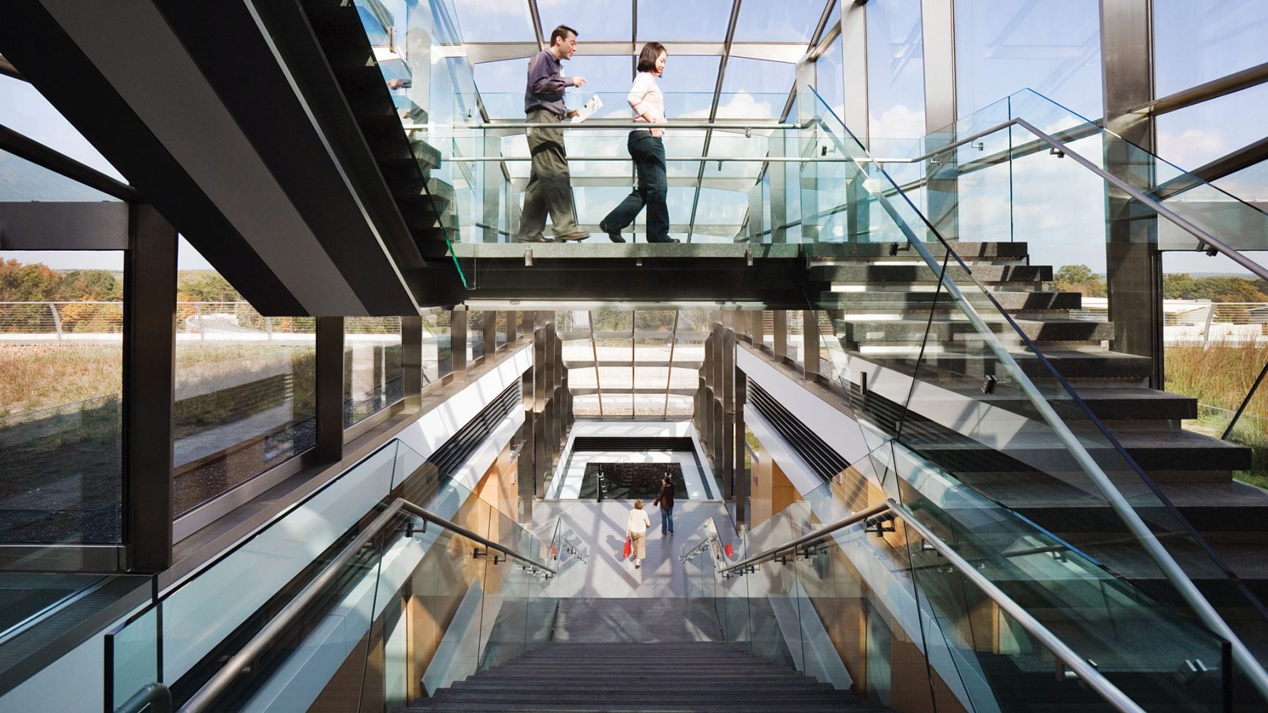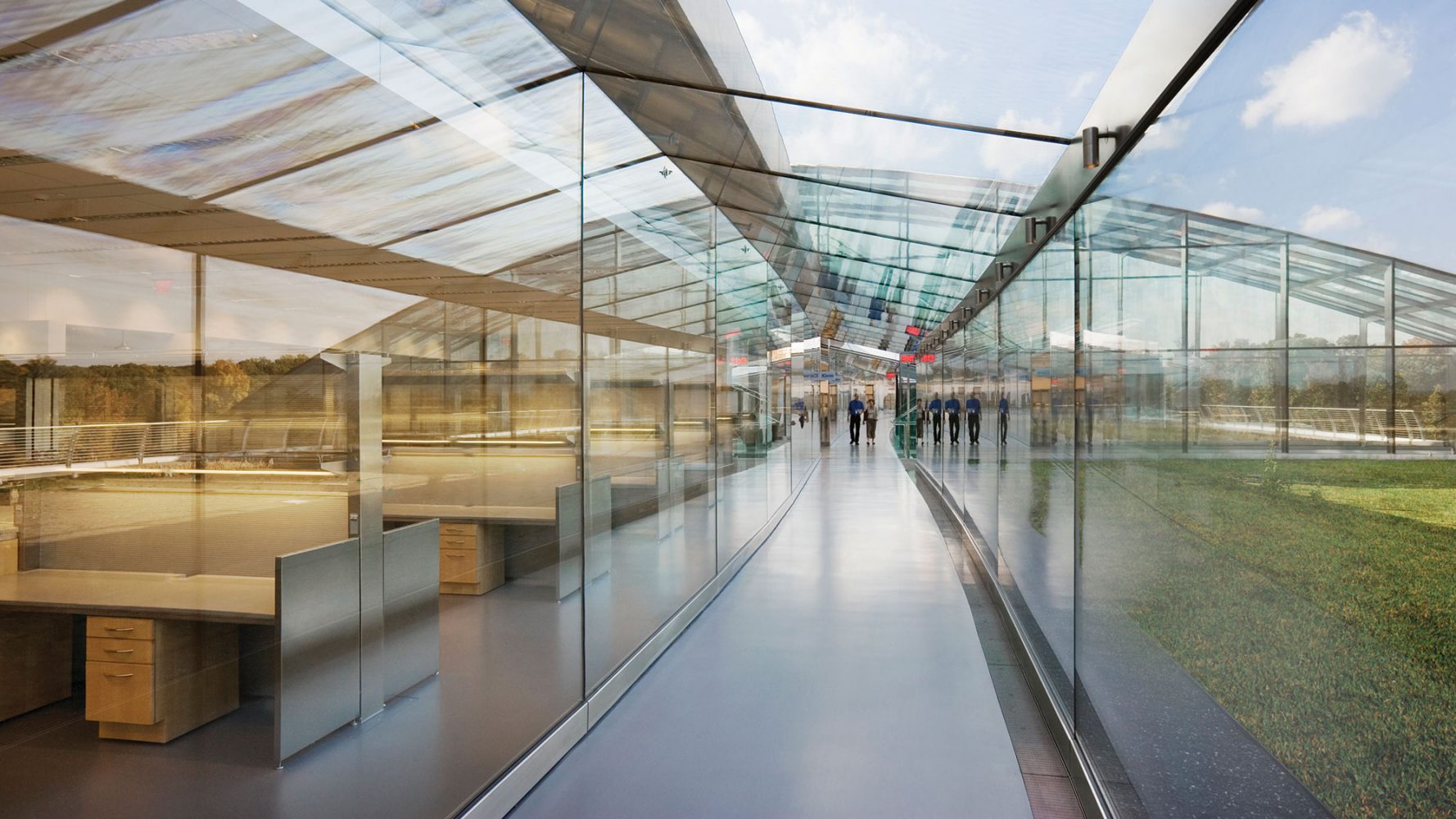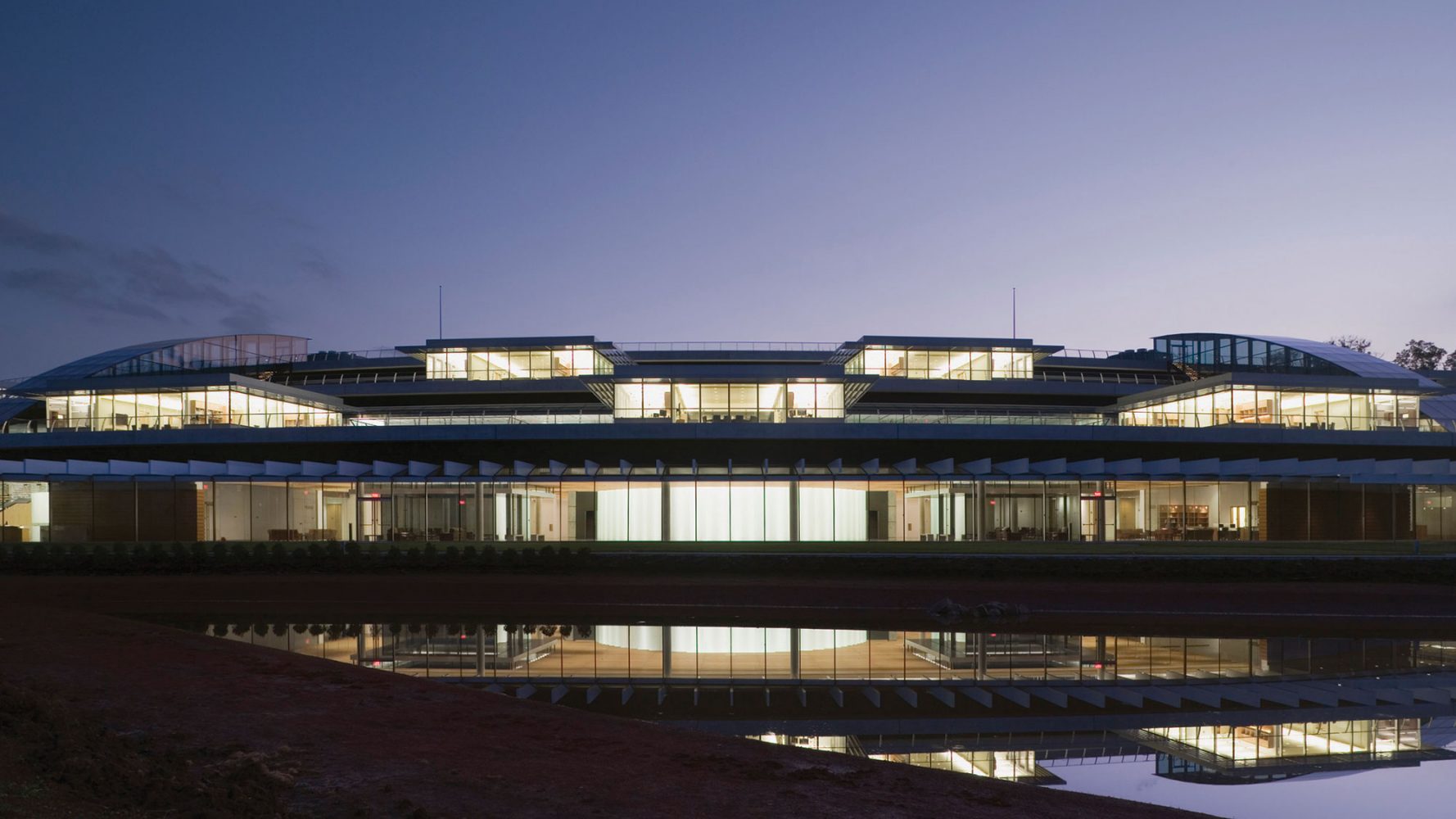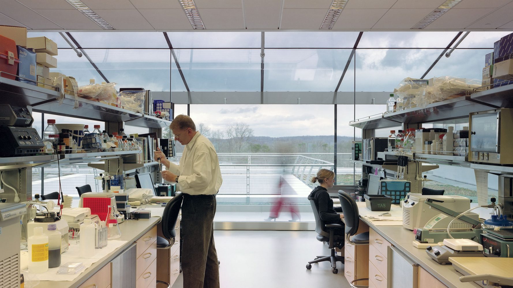 The leading-edge, naturally lit laboratory is built into the natural contours of the site in rural Virginia and features what was the largest green roof in the world at the time it was built. The bucolic campus encompasses conference and dining facilities as well as short, medium, and long-term residential units for visiting researchers.