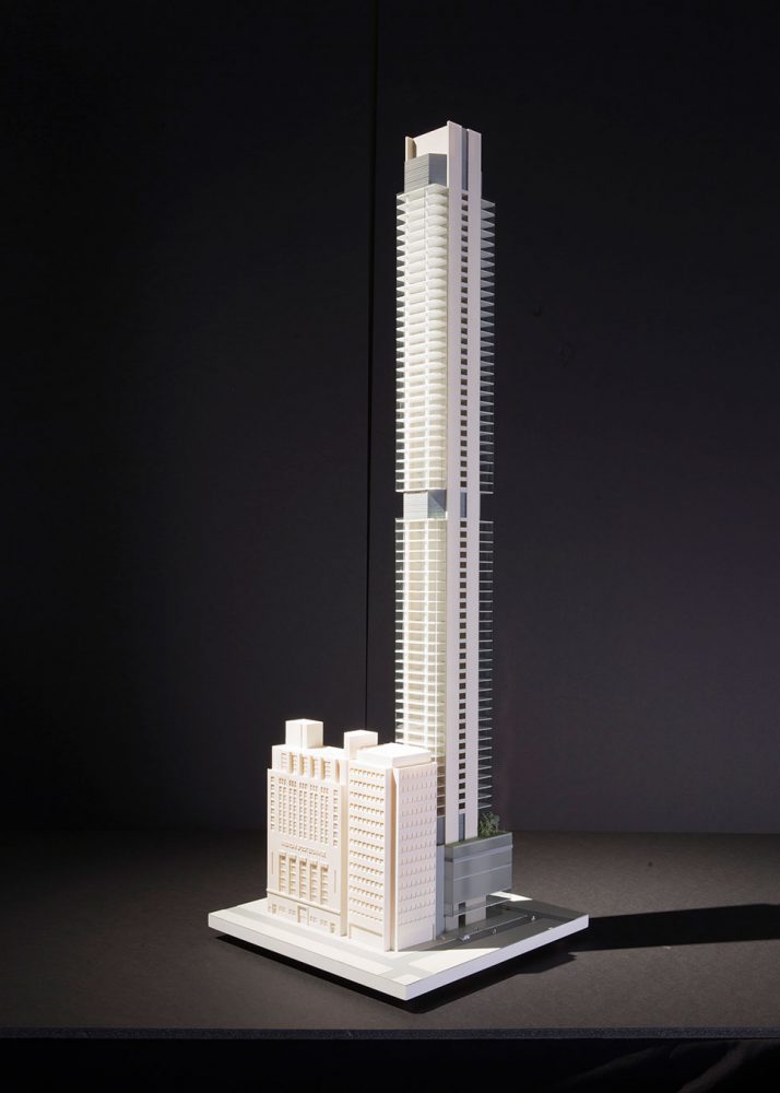 Viñoly solicitó que se modificara la zonificación para que el perímetro del edificio admita plataformas de piso de mayor superficie a cambio de reducir la altura anteriormente aprobada para el proyecto; es decir, 70 pisos en lugar de los 85 que se habían autorizado. La menor altura permite una proximidad respetuosa con los edificios del nuevo complejo del World Trade Center recién edificados y en construcción. A pesar de incrementar su impacto, la torre extiende su fachada de vidrio más allá de su masa estructural para abarcar todo el perímetro del terreno donde se edifica. Los dos muros de carga en forma perfil doble t soportan el núcleo del edificio y eliminan todo otro soporte, excepto cuatro de las columnas interiores.