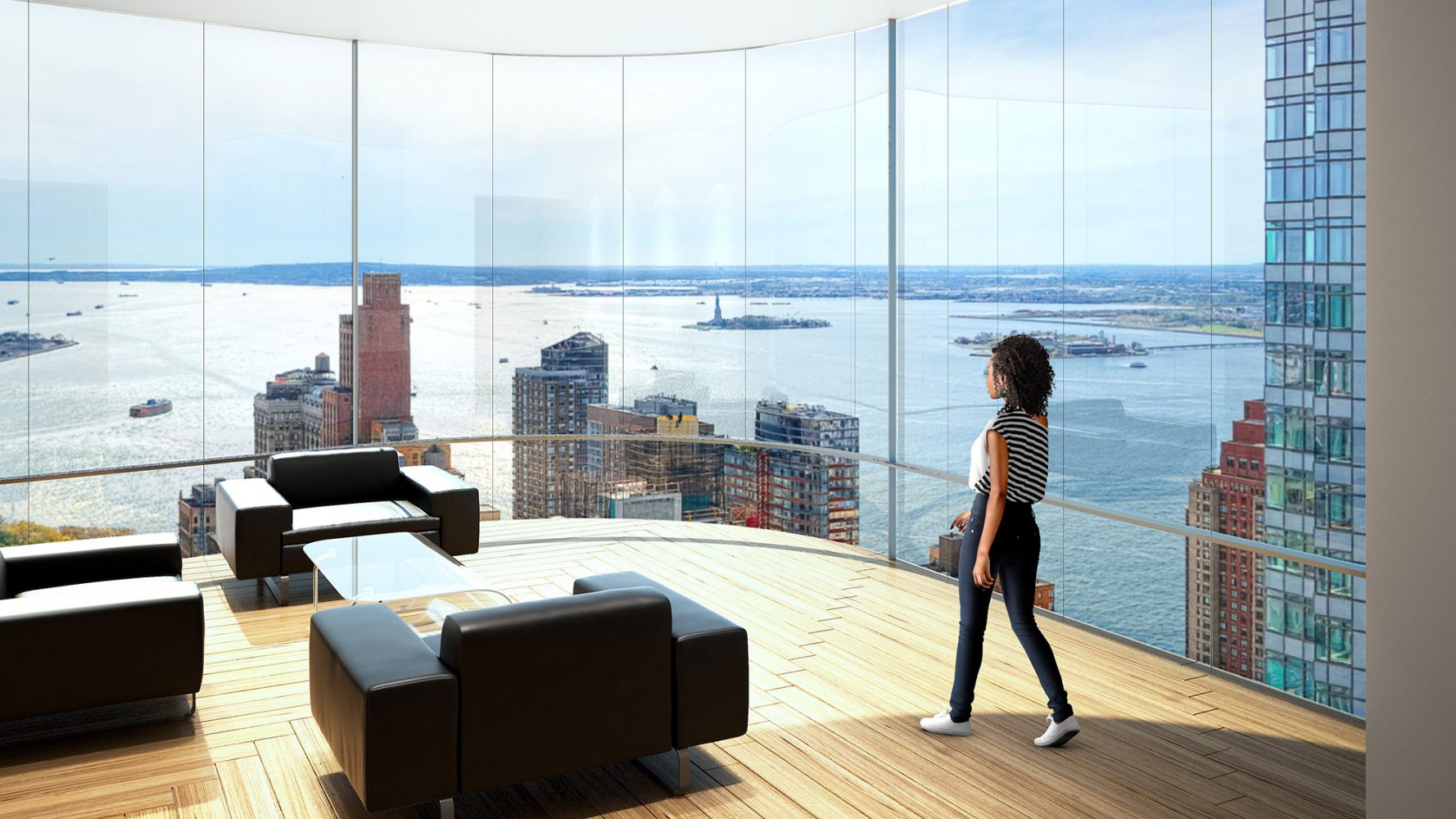 Los pisos hexagonales dedicados a equipamientos mecánicos, que funcionan como cortavientos estructurales, se encuentran entre los dos grandes volúmenes de unidades residenciales. Estos pisos para equipamientos mecánicos también crean una ruptura visual en la fachada acristalada de la torre que se eleva sobre una base de 8 pisos. Coronan el edificio servicios para los residentes como salas de conferencia, instalaciones deportivas y spa, una gruta, cancha de squash, biblioteca, área de juegos, cocina de demostración y un bar tecnológico. Situar estas instalaciones en los pisos superiores en lugar de en los pisos residenciales dota a cada departamento de vistas panorámicas de la Ciudad de Nueva York.