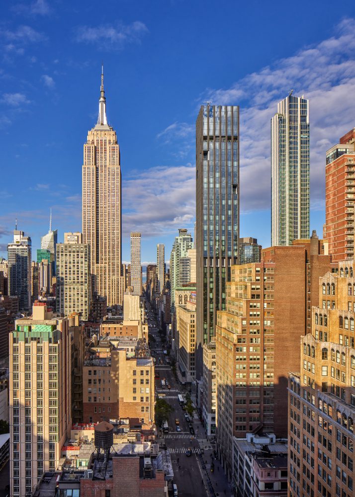 277 Fifth Avenue’s architectural design exemplifies a modern, minimalist aesthetic, defined by a building layout with high ceilings and floor-to-ceiling windows that attract abundant natural light and reveal the beauty of the New York cityscape. Each residence was designed as a corner unit with at least two exposures, and many residences have three or four exposures. Columns support the building only at its perimeter to keep the interiors free from structural elements that might interrupt the layout of the rooms.