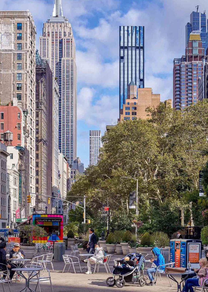 The 277 Fifth Avenue condominium building is located in NoMad (short for North of Madison Square Park), a vibrant Manhattan neighborhood that surrounds Madison Square Park and is situated at the crossroads of the East and West Sides, as well as Uptown and Downtown. At about 205 metres tall, the tower rises to 55 stories, with retail space allocated to the first two levels, followed by various amenities on the next two floors, including entertainment and gaming lounges, private dining room, fitness center, and a landscaped terrace along Fifth Avenue. The rest of the upper floors house 130 condominiums ranging from one to four bedrooms.