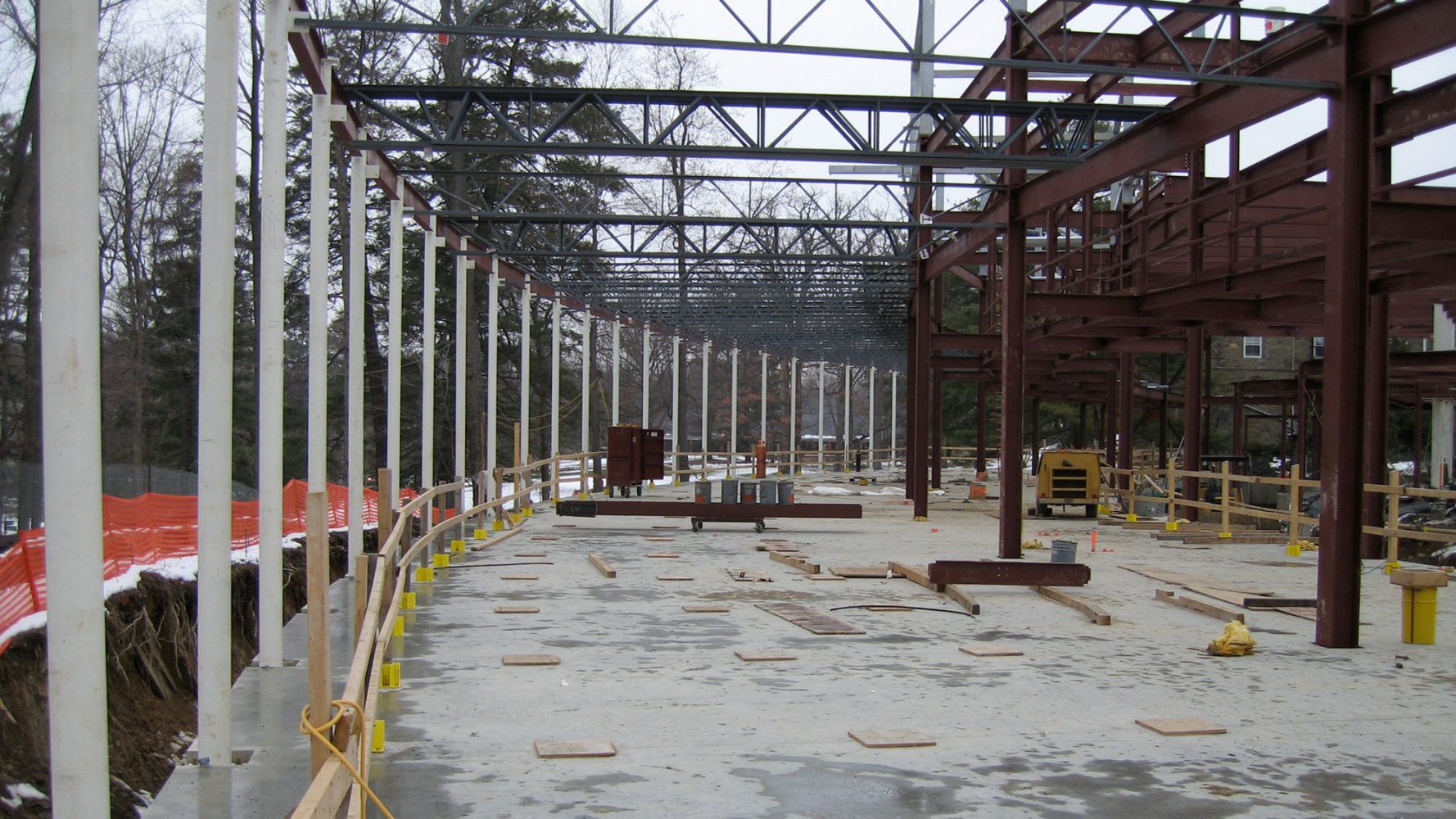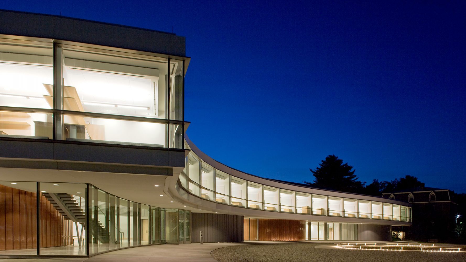Constructed in a prominent, central campus location, the design solution for this program paid close attention to site planning, as well as, spatial composition to encourage student-faculty interaction in informal spaces. Conceived for its context, the Center is a gently curving metal-clad structure set low to the ground in a clearing. Cantilevered over an axis generated by the campus walk, the building establishes a visual connection with the heart of the College grounds and allows the path to continue. Respectful of its natural environment, it is both multifunctional and inspirational.