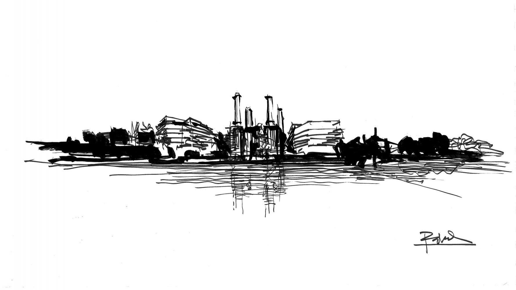 The primary design goal is to reinforce the presence of the Power Station as the main architectural feature of the site by setting it in a formal space (“The Circle”) defined by a reflecting pool and open to views to and from the Thames and its north bank. Accessibility to the site is further increased by creating three primary streets that link the Power Station to the site’s southern perimeter and through to a future extension of the waterfront park and river walk.