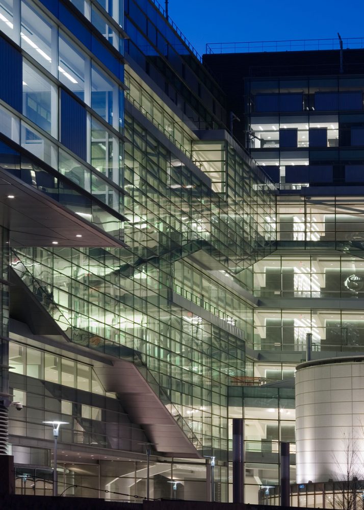节能体现在大量使用自然采光,高性能LOW-E中空玻璃,节能的补光,并且结合了置换通风的空调系统。