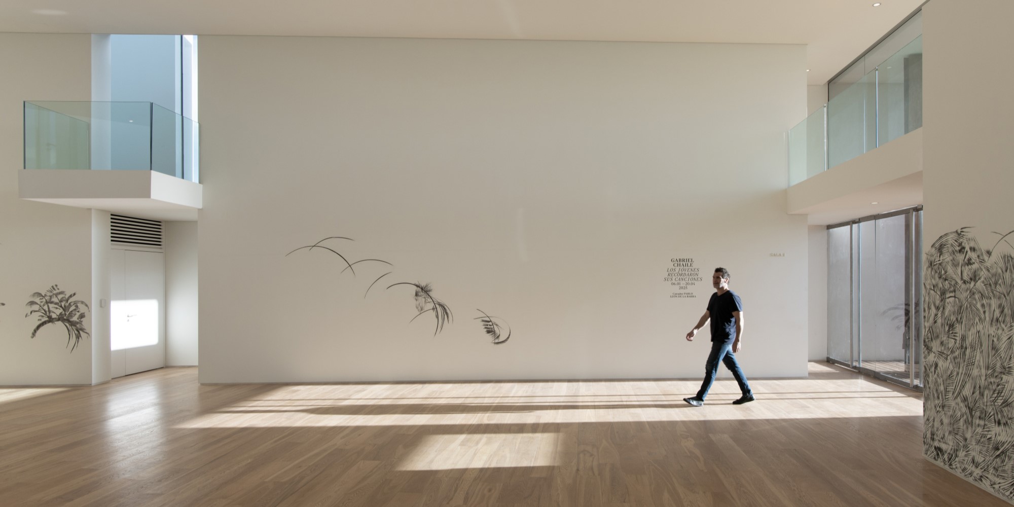 The project follows the asymmetrical shape of its site, a right triangle whose hypotenuse is distended in an arc some 50 meters in length. The building follows that precise shape, with the minimum allowable set back from the lot lines to generate the largest possible internal area and allowing a wide variety of pedestrian perspectives toward its sculptural form. Its two-story exterior is defined by a simple white wall to the north, a mostly glass façade to the east, where the main entrance is located behind a 6-meter-high monumental Corten steel pivot door, and to the south, a large wall of monumental granite blocks hewn with the traditional method of the Incas. Being the main façade of the project, this curved, slightly inclined and monolithic element presents a quasi-geological shape that over time will assume an increasingly naturalistic patina.