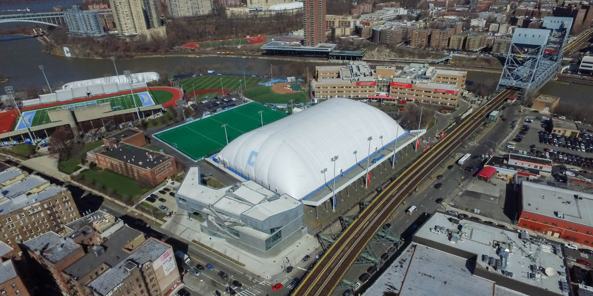 The seasonal air-supported structure provides Columbia and the local community a heated and illuminated indoor environment that supports numerous programs during winter months, including football, soccer, baseball, softball, field hockey, lacrosse, golf, archery, intramurals, and club sports.