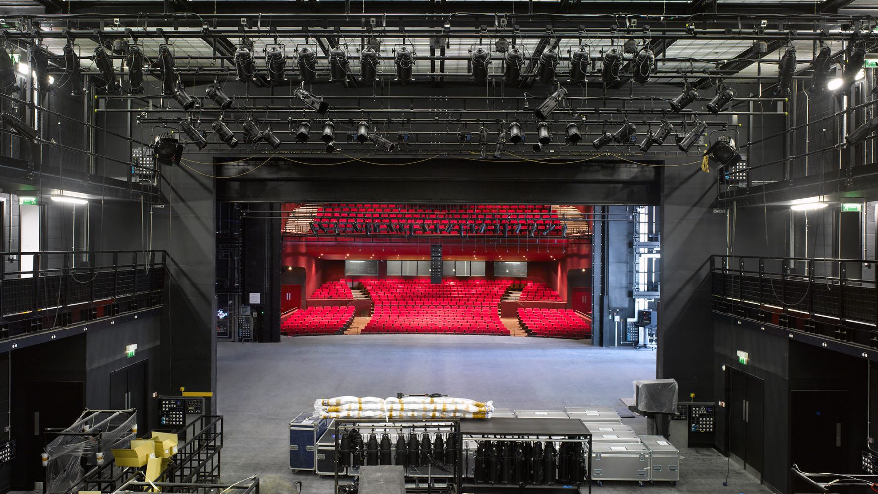No distinction is made between front- and back-of-house because the stage itself can be made part of the lobby and circulation. Situated at ground level across the main lobby from the stage, double-height workshops and production spaces feature glass walls that expose production activities and make them a visible part of the overall performance experience.