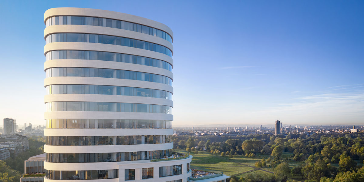 Rafael Viñoly Architects was hired by London-based developer Almacantar in 2011 to design a large mixed-use development, combining prime residential, office, retail, restaurant, and cinema space. Located immediately to the north of the Grade I listed Marble Arch and Portman Estate Conservation Area, the site marks the western end of Oxford Street and offers stunning views across Hyde Park.
