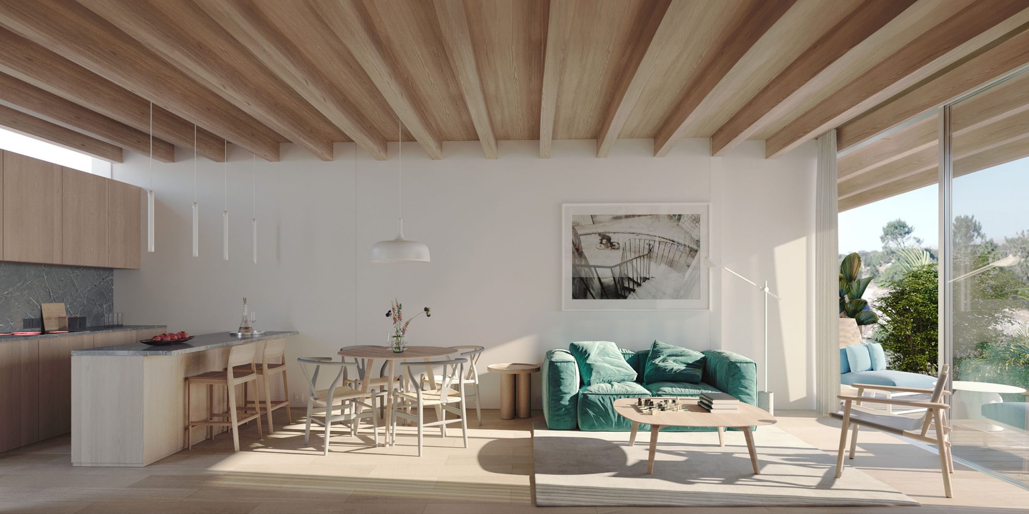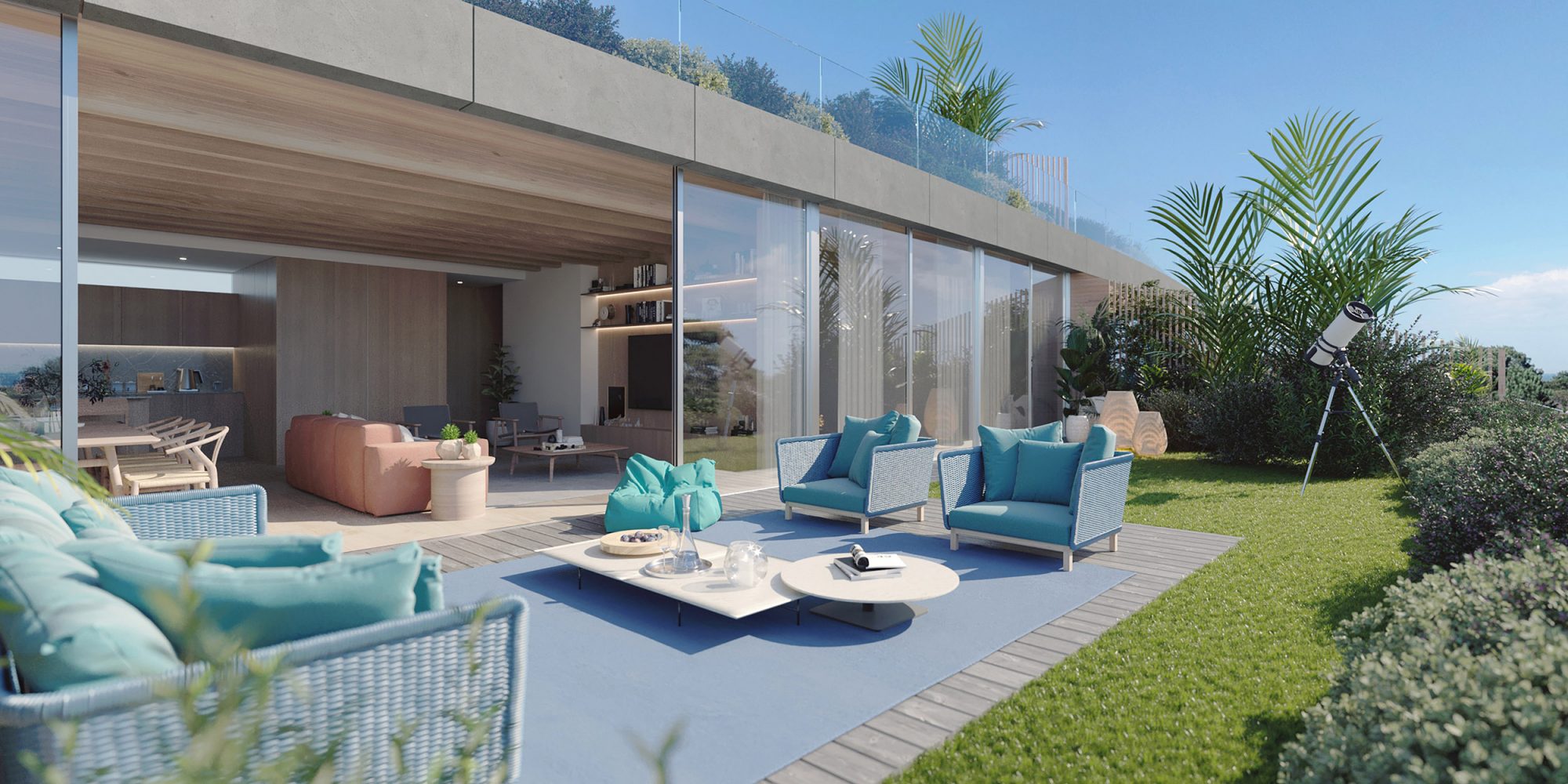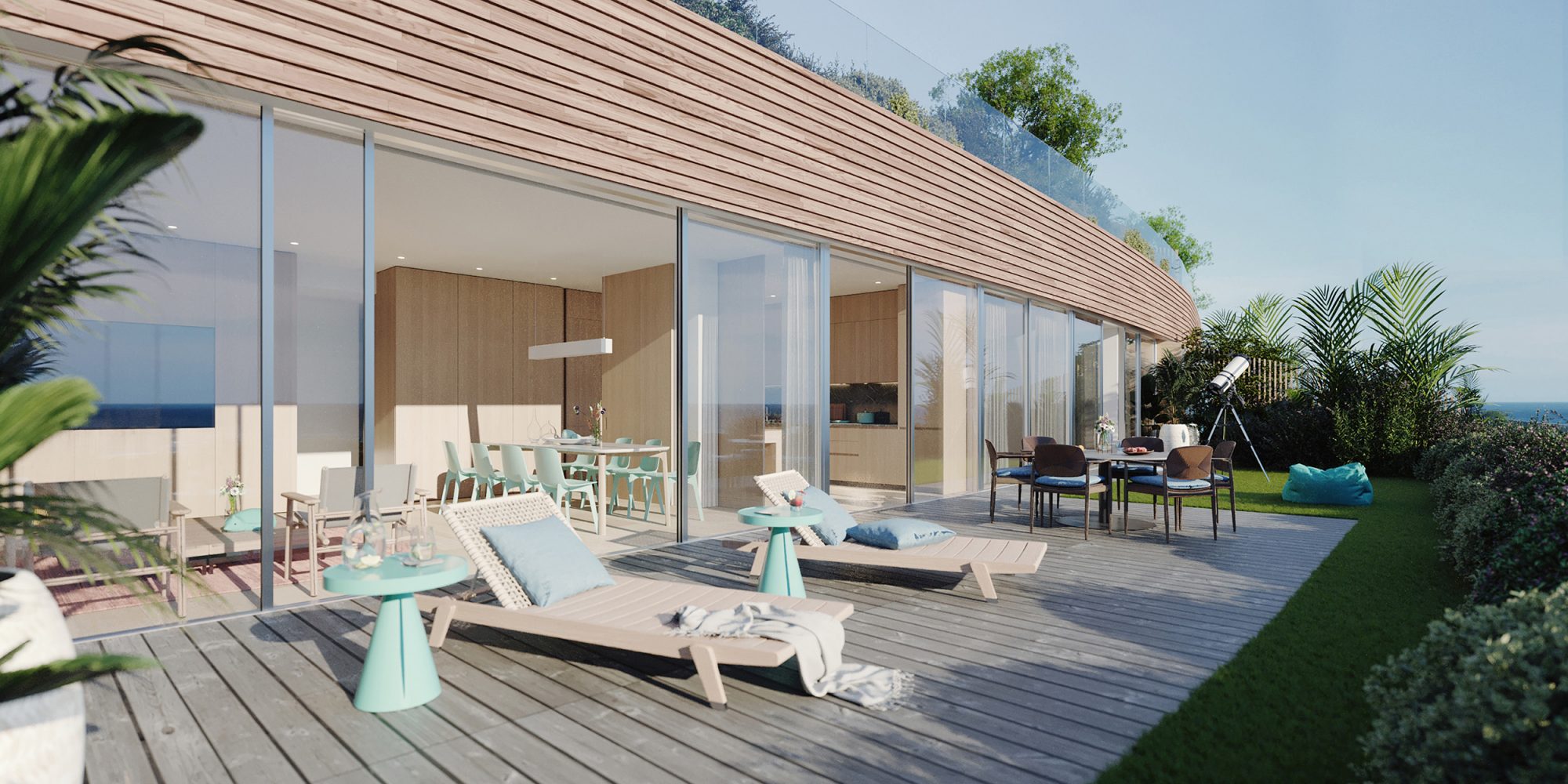 The development’s radical sustainability combines with logically distributed and generously proportioned interiors that open to the large elevated private gardens with panoramic views to create an effect of “conscious luxury” – a feeling of being at one with nature and with oneself in an environment that supports resilience, harmony, and wellbeing without ever being – or feeling – frivolous or ostentatious.