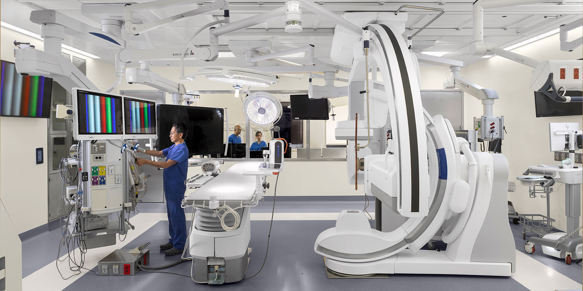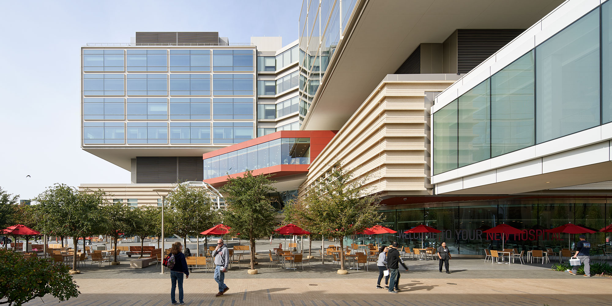 In 2006, Stanford Hospital & Clinics required a new, state-of-the art facility that would replace existing clinical functions while maintaining and enhancing connections to its preexisting buildings. Rafael Viñoly Architects was selected for its unique approach to healthcare design: rather than creating the typical base-and-tower hospital building, the firm proposed a modular plan that can be easily adapted for a variety of uses, thus allowing both for incremental expansion of the hospital building and a horizontal development strategy that complements the low-rise campus context of Stanford University and its Medical Center.