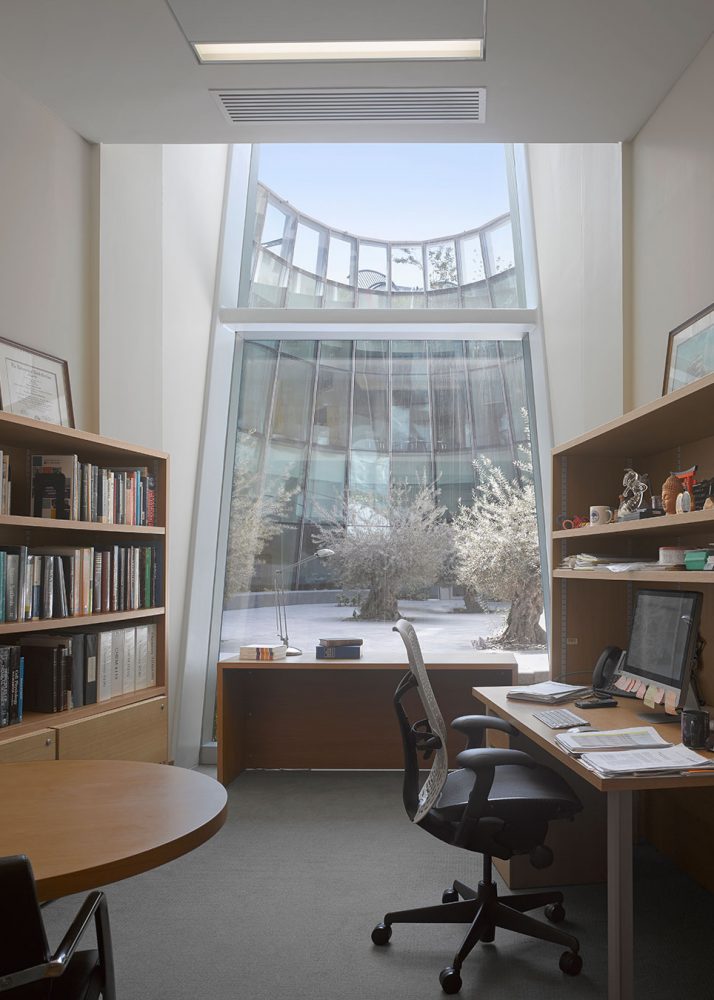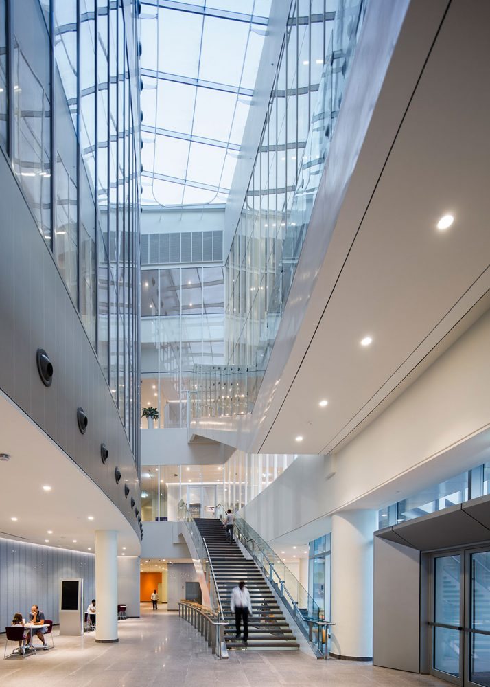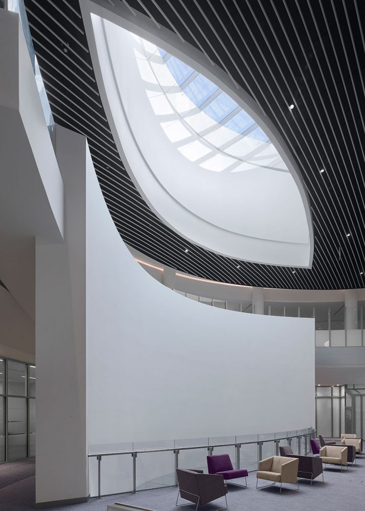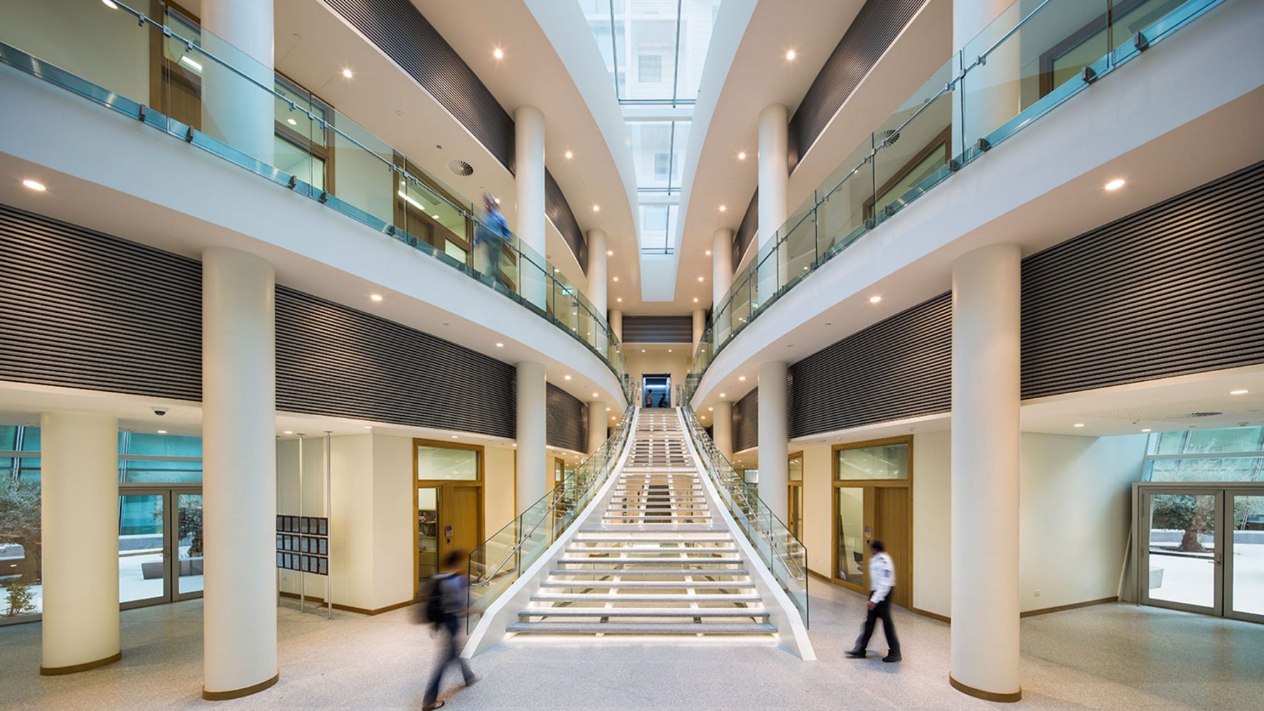 En la plaza occidental, los laboratorios del Edificio de Investigación Experimental albergan la investigación científica avanzada. Estos laboratorios se adaptan a las necesidades variables de la investigación. En la plaza oriental, el Centro de las artes —con un teatro con aforo para 700 personas, un teatro experimental con 150 asientos, auditorios, salas de proyección y espacios de educación artística— se ubica frente al Centro de conferencias público del campus y constituye una interconexión dinámica entre los profesores, los alumnos y la ciudad.