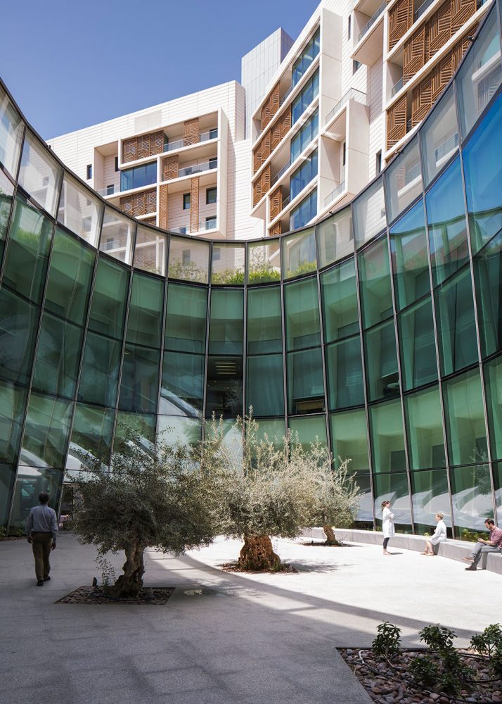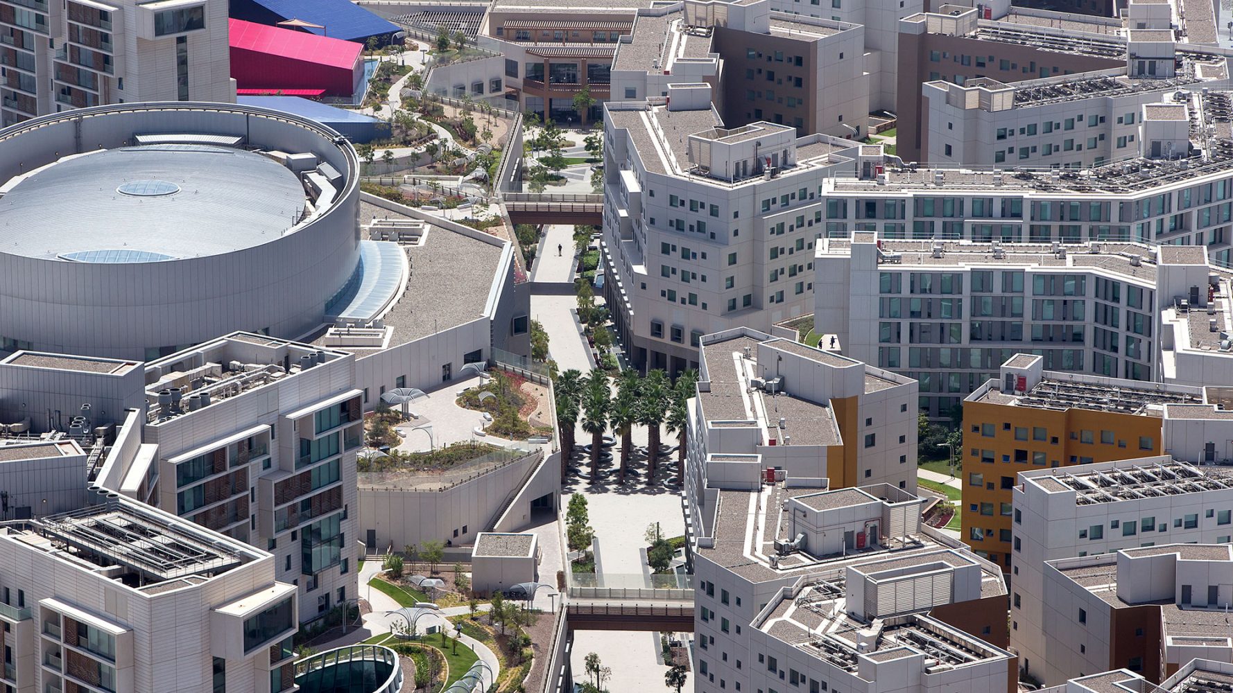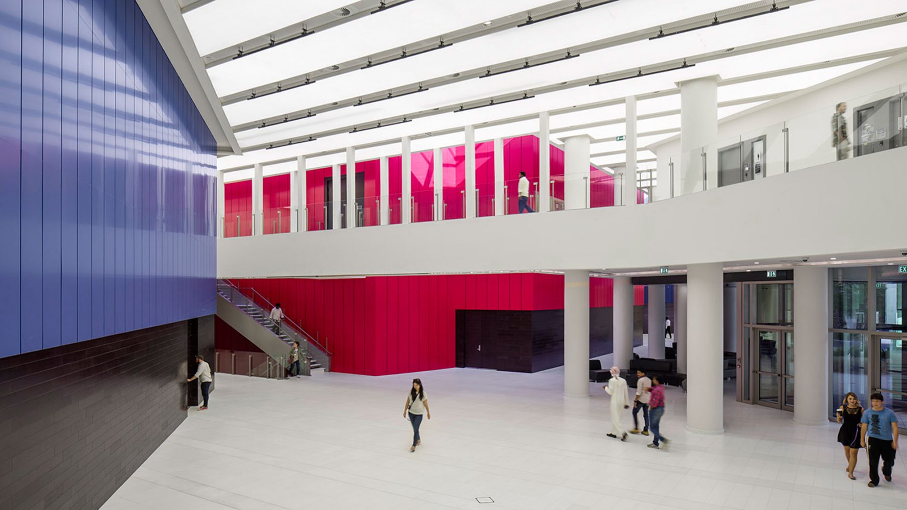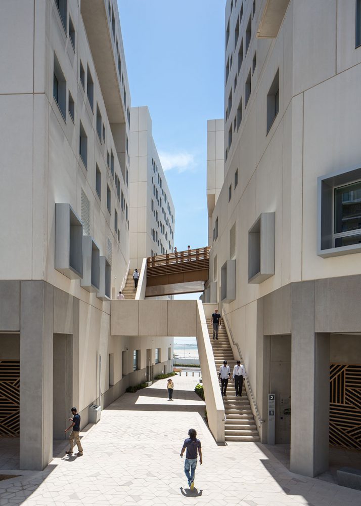 Una red de 29 edificios académicos, residenciales, para el arte, la vida estudiantil y la investigación está dividida en niveles y orientada al peatón e integra las tipologías de planificación regionales y occidentales para crear un microclima confortable que permite que el liberalismo intelectual florezca en el corazón de Oriente Medio.