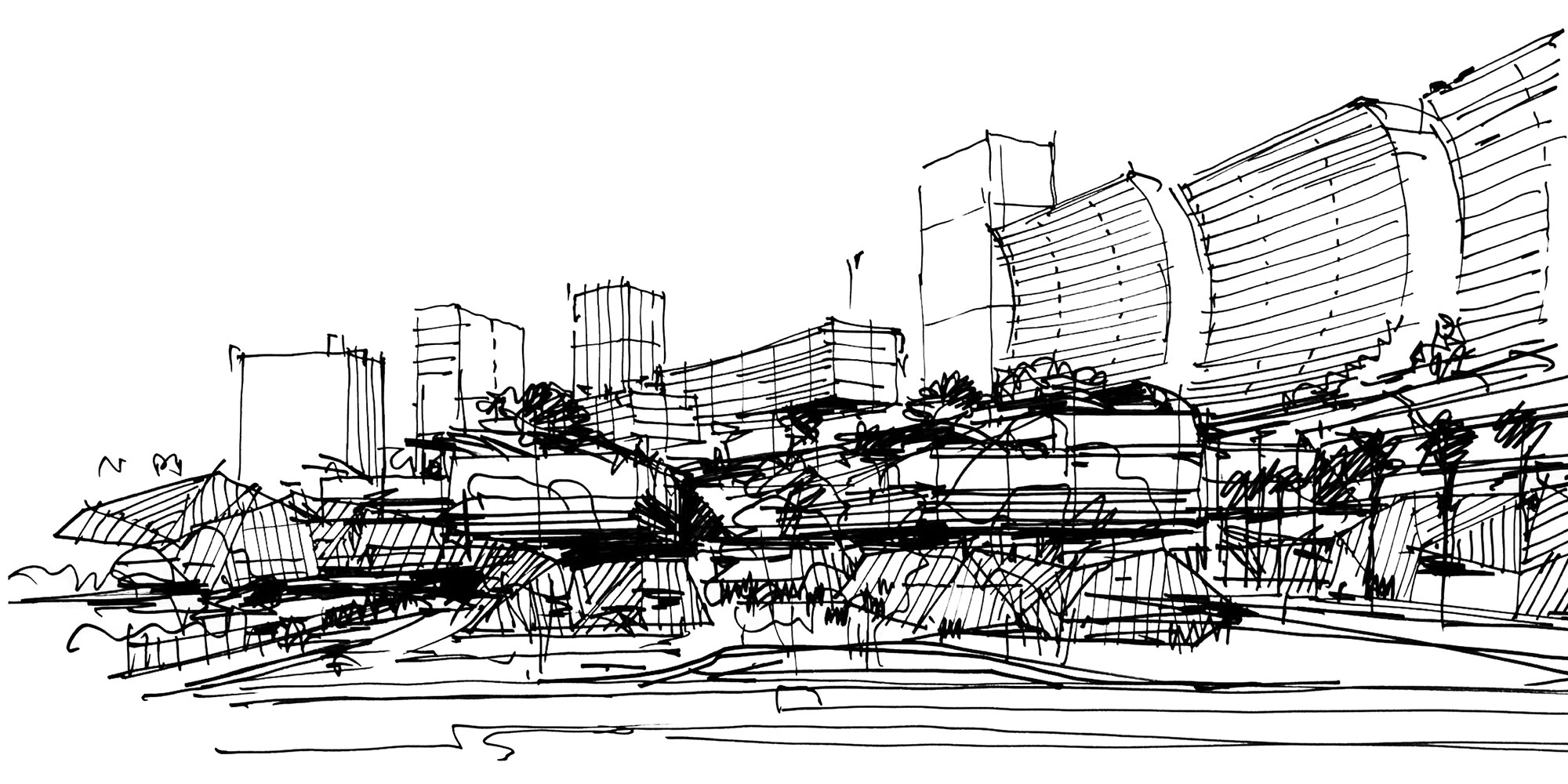 Raffles City Bahrain is a high-density, mixed-use development sitting on reclaimed islands off the coast of Manama City, the capital of the Kingdom of Bahrain. Rafael Viñoly Architects was invited by one of the complex’s developers, CapitaLand, to design 4.3 million square feet of high-end residential and retail space in a development known as Raffles City Bahrain. The resulting proposal unifies four adjacent lots in one architectural response to the site conditions, curving in section as well as in plan, with stacked building types and elevated infrastructure that creates a new urban typology.