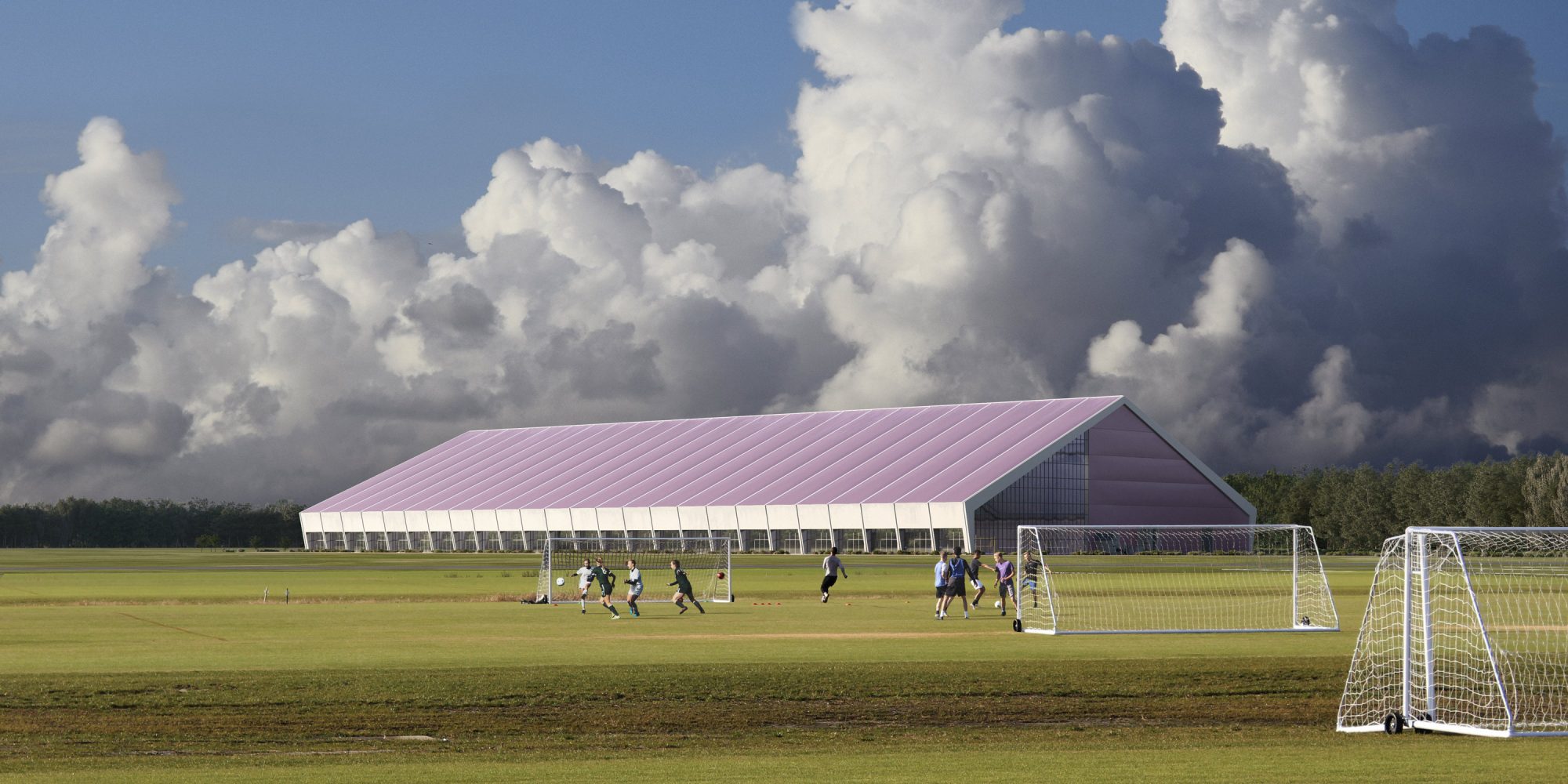 A 250-foot-wide by 500-foot-long by 80-foot-high framed fabric structure will provide space for indoor sports practice and exercise during the winter and inclement weather, and community events year round.