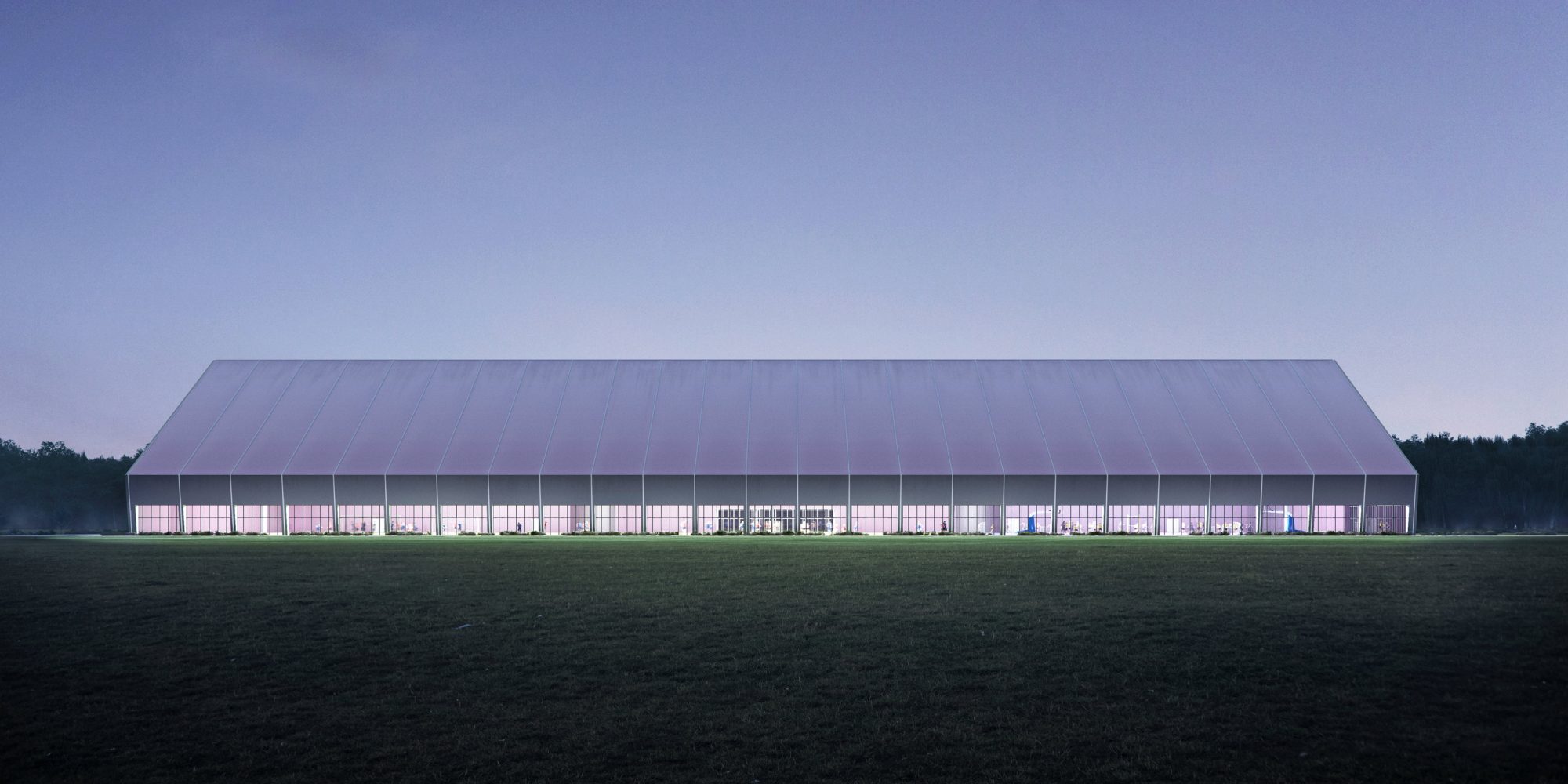 The framed fabric structure will be complemented by a modest 4,500 sf support building that includes a large reception, multi-purpose room, male and female toilets, storage, and mechanical rooms.