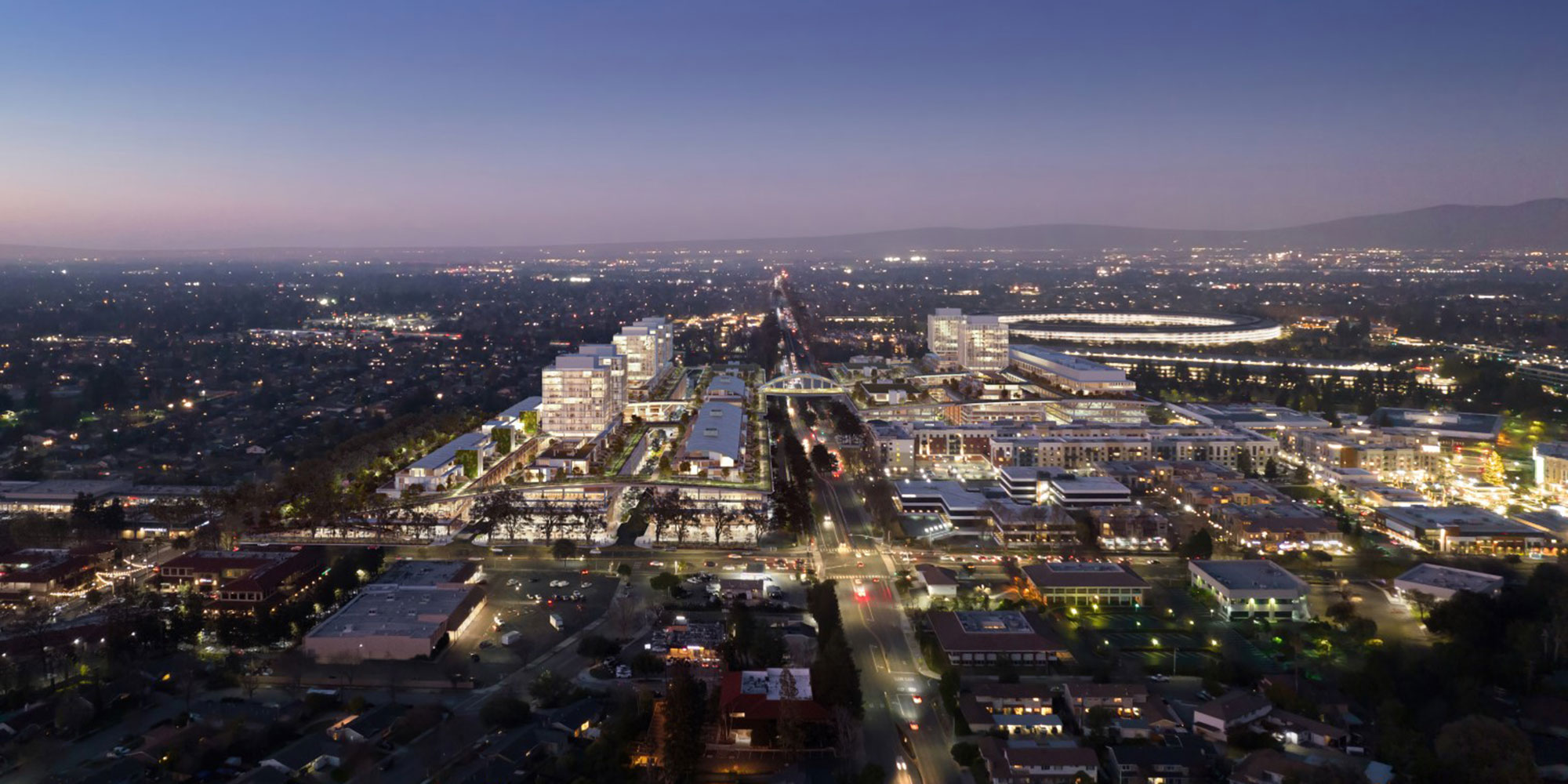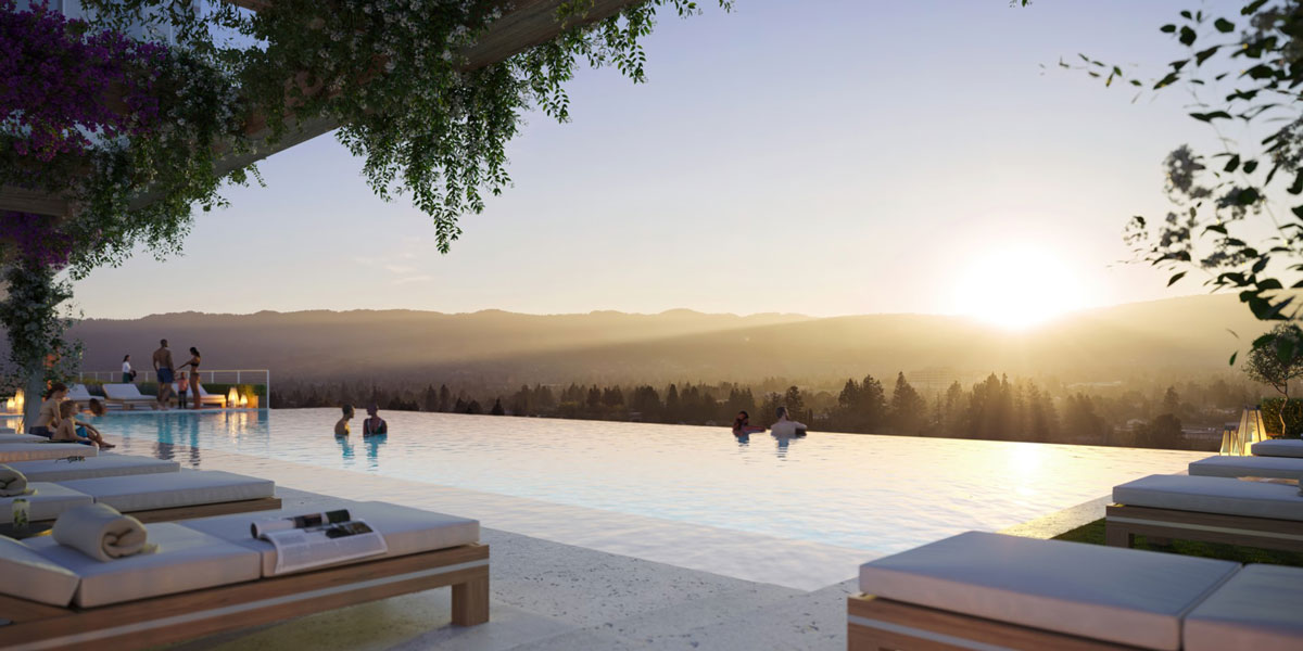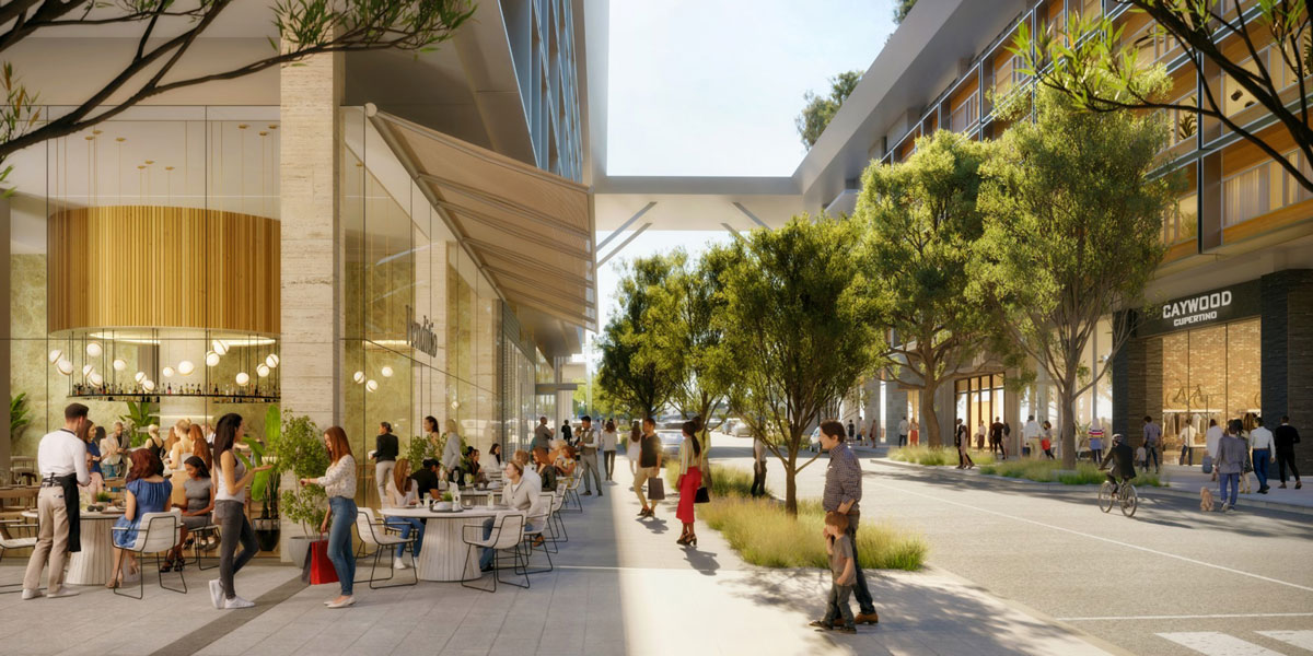 For The Rise in Cupertino, California (previously known as the Vallco Town Center) landscaping, public amenities, residential uses, circulation, and views are layered in an innovative manner to create a unique open space environment rich in variety of experiences.