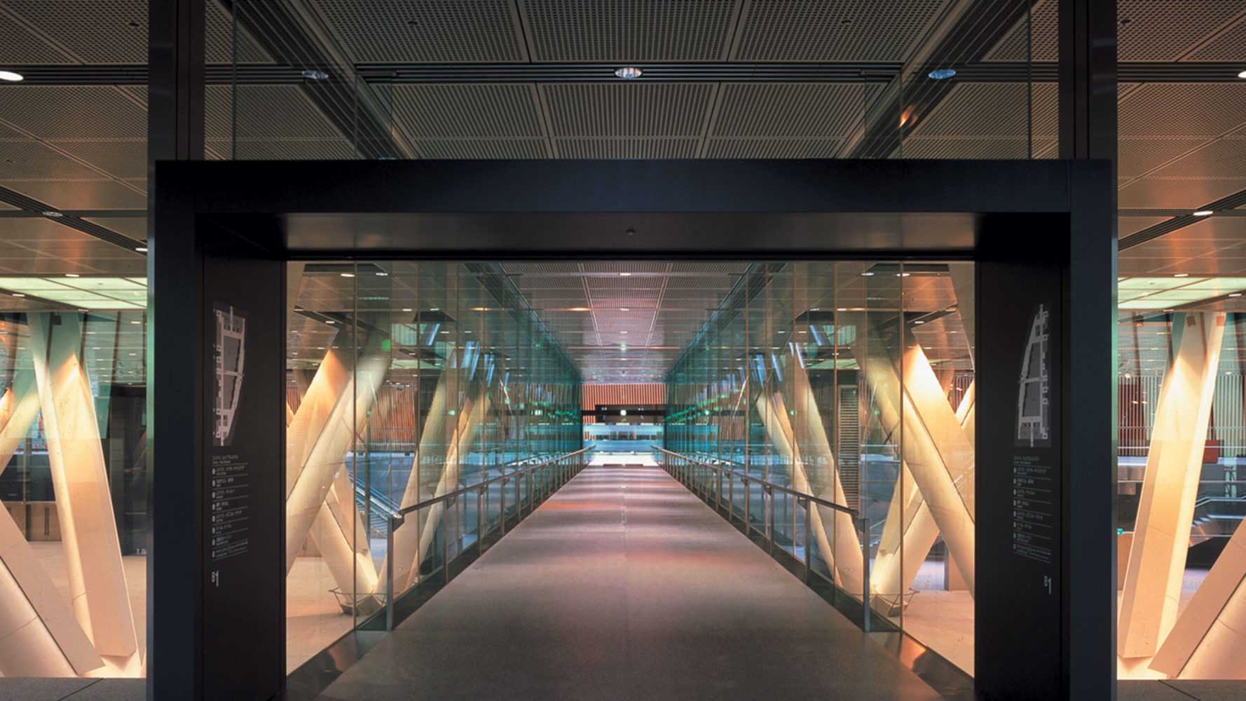 在广场下面,是一个公共大厅,它连接到地方和区域铁路网,环绕中央展厅,成为玻璃大厅的主楼层。桥梁和行人坡道连接所有的会议室和剧院,给这座综合体承载各种规模各种类型的事件提供了巨大的灵活性。