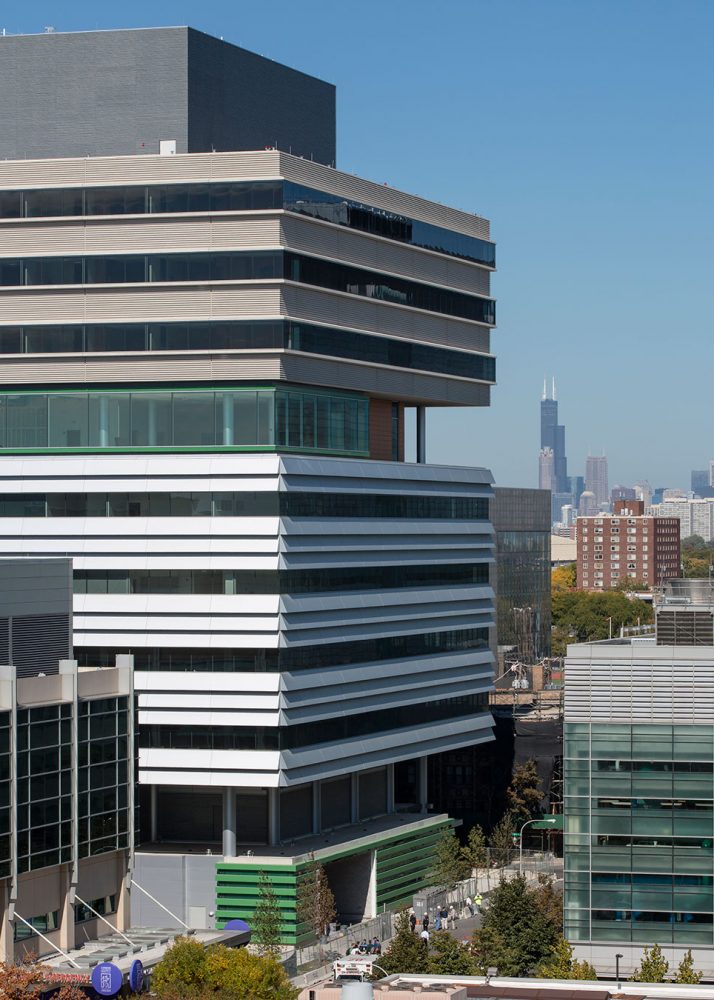 Este edificio, ampliación del Medicine Center for Care and Discovery, hospital clínico de la Universidad de Chicago, ocupa el terreno asignado y se extiende sobre Maryland Avenue hacia un emplazamiento adicional al oeste. Con grandes plantas unificadas, inherentemente flexibles y aptas para la planificación a corto y largo plazo, esta conexión potencia el objetivo del hospital de maximizar la eficiencia permitiendo que varias funciones sean contiguas y reduciendo la necesidad de que el personal tenga que desplazarse entre pisos. El edificio fue diseñado para albergar tecnología y prácticas médicas en continuo cambio; en particular, la altura de 5,5 metros de cada planta y el módulo estructural y de planificación de 9,6 por 9,6 metros permiten una gran flexibilidad para reconfigurar los departamentos y actualizar el equipo.