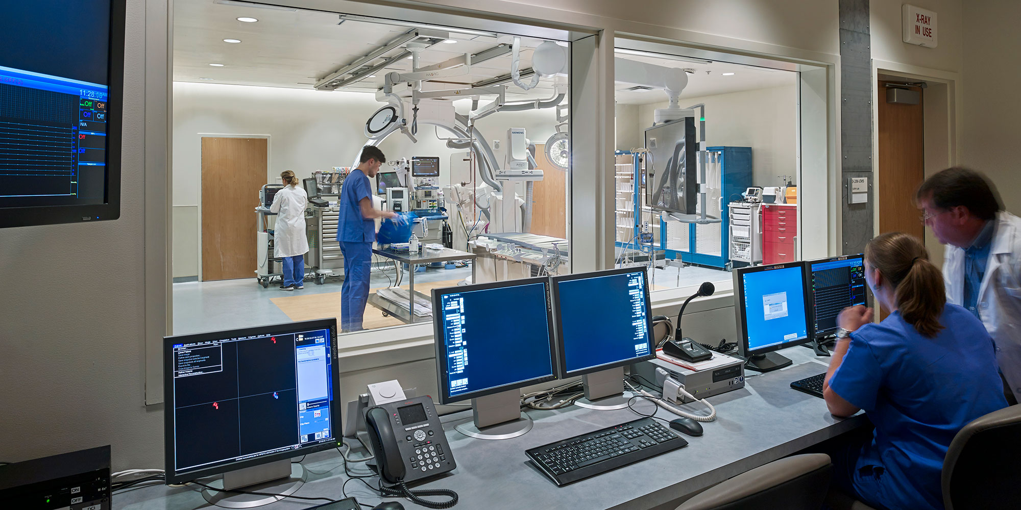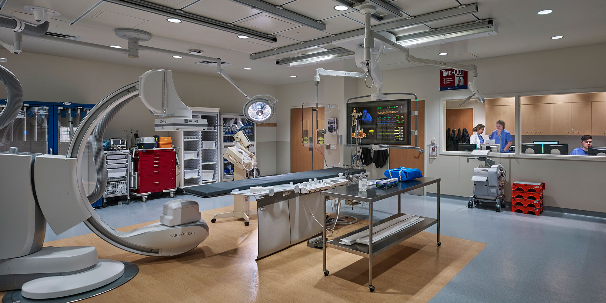 A light-filled atrium organizes the circulation within a complex of clinical, translational research, and education facilities that demonstrate that phased development is possible in a single building without interrupting its critical functioning.