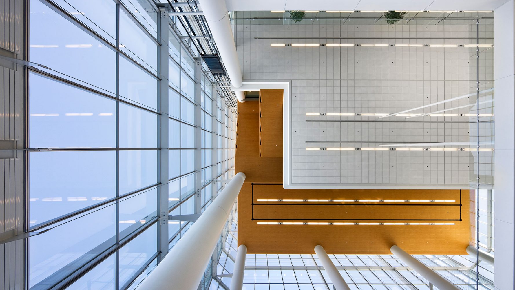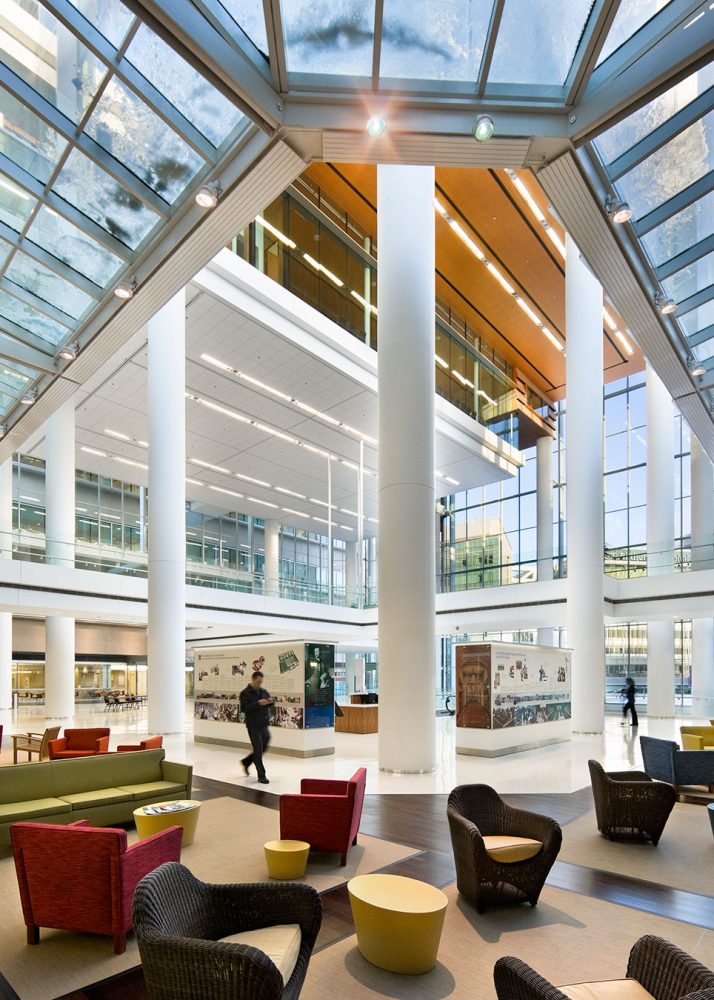 Un atrio lleno de luz organiza la circulación dentro de un complejo de instalaciones clínicas, educativas y de investigación traslacional, que prueban que es posible realizar un desarrollo por etapas en un mismo edificio sin interrumpir su funcionamiento esencial.