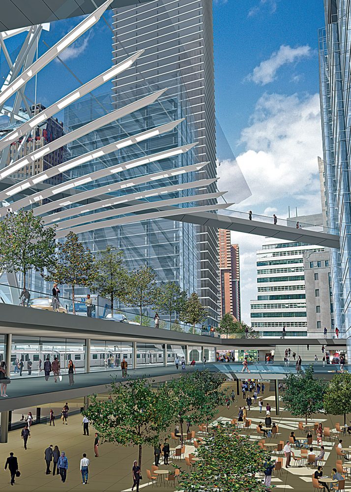 At ground level, the master plan restores the street grid that had been obstructed by the original World Trade Center. With a large public park, retail, and ground-level cultural facilities, in addition to below-grade memorial plazas in the footprints of the original towers, the streetscape is enlivened to make the site a 24-hour destination. Commercial office buildings and a new transportation hub and retail center are located on the newly-recreated city blocks; situated around the perimeter of the plan, they defer to the new public space that will symbolize and drive the renewal of Lower Manhattan.